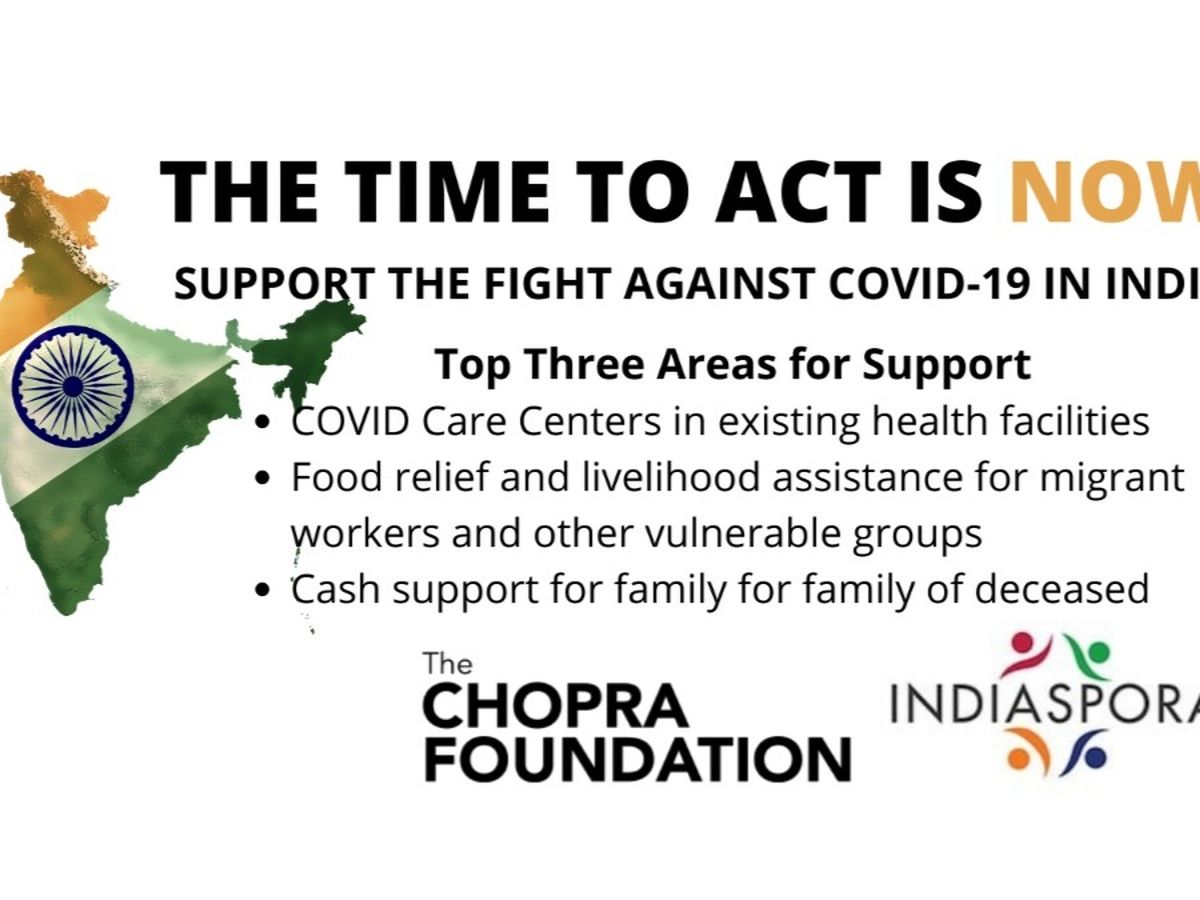 As India faces an overwhelming surge of record-breaking COVID-19 cases and deaths, the Chopra Foundation would like to invite our Global Family to fund and support the ongoing campaign. The Chopra Foundation is supporting Indiaspora's COVID19 relief campaign in India in the following three areas: