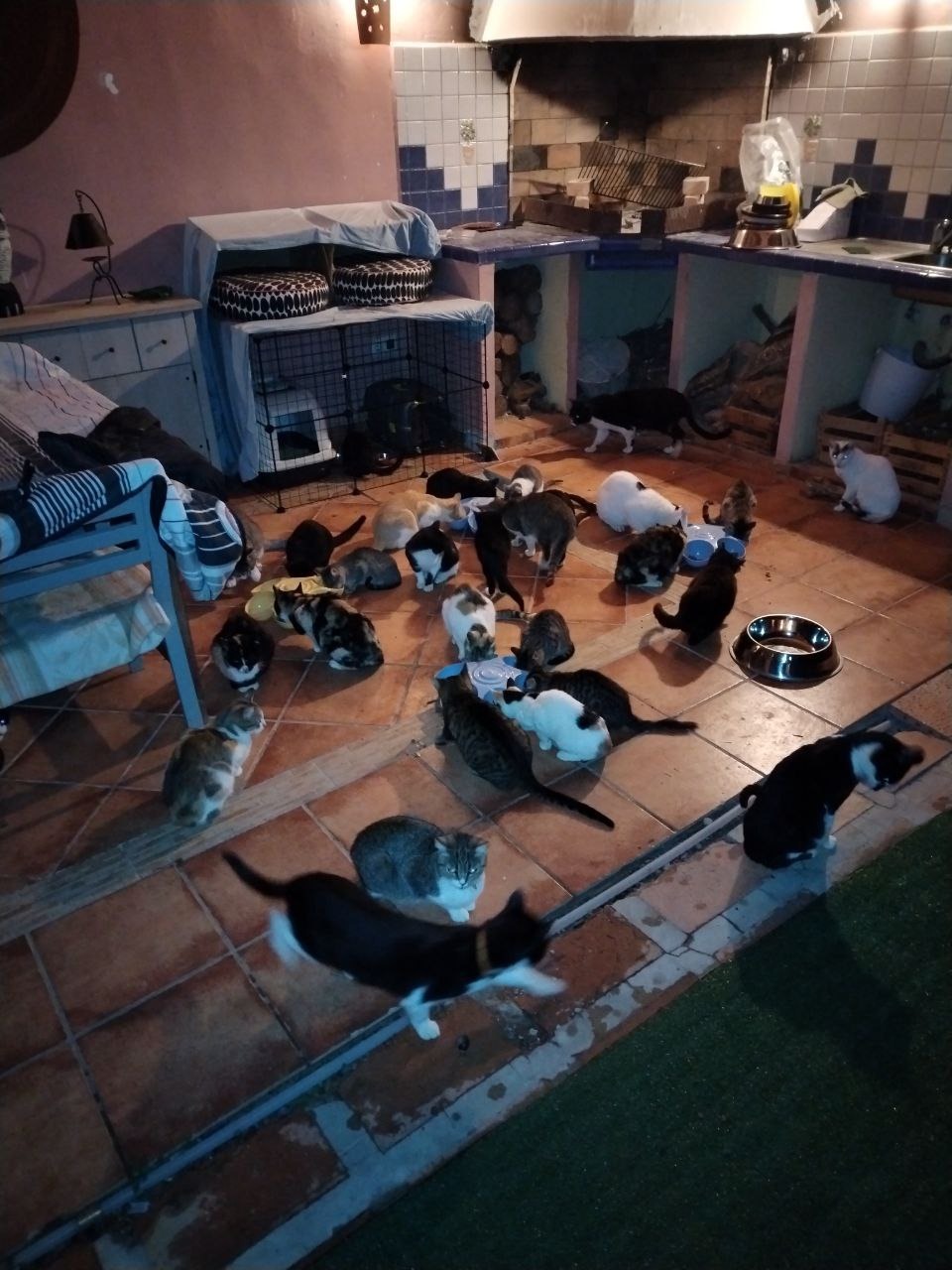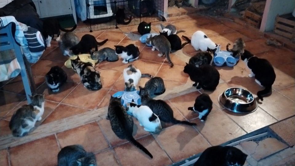 Mi madre y yo vivimos desde hace cinco años en este viejo chalet de fin de semana que poco a poco hemos reconvertido en una casa de campo. En él ha crecido una colonia gatuna a la cual hemos dado alimento y amparo el tiempo que llevamos aquí pero en los dos últimos años, las enfermedades, atropellos y ataques de algunos desalmados, han hecho mella en mi capacidad financiera y anímica. He tratado de recurrir a las protectoras como primera opción.