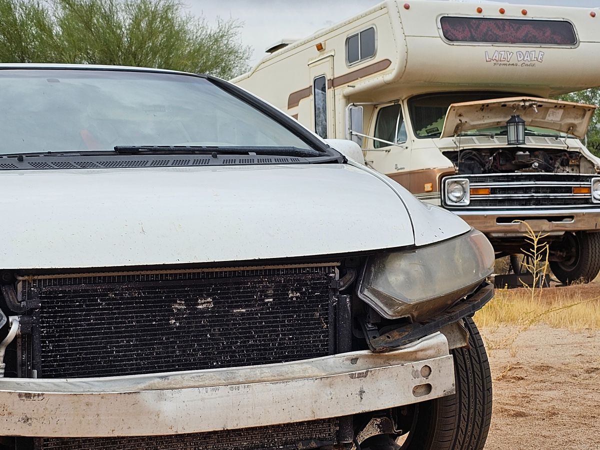 Here's part of my story: I ended up camping in a small unincorporated area about 22 miles from Tucson, AZ last year, due to how ridiculous the housing market is. I eventually moved into a 5th wheel RV after living in some hotels, a van, and a tent. After an abusive situation including my spouse and my landlord a few months ago, I ended up in my friends' 45 year old RV you see in the banner image.
