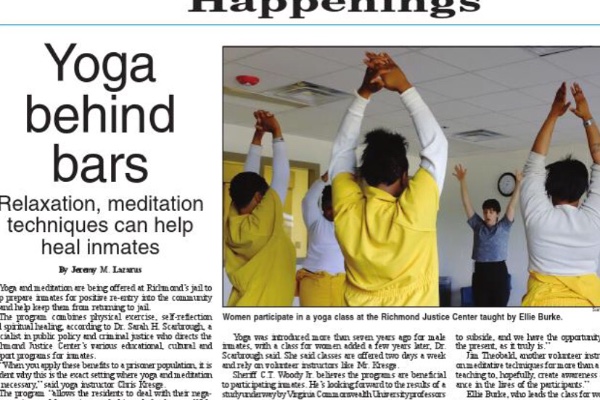 I have been volunteering my time to teach yoga (including yoga nidra & meditation) to the women at the Richmond City Jail for the last year with the hope of providing them with a way to increase their self-awareness, undo deeply held tension, and gain a sense of self that is other than what they've experienced potentially throughout their entire lives.