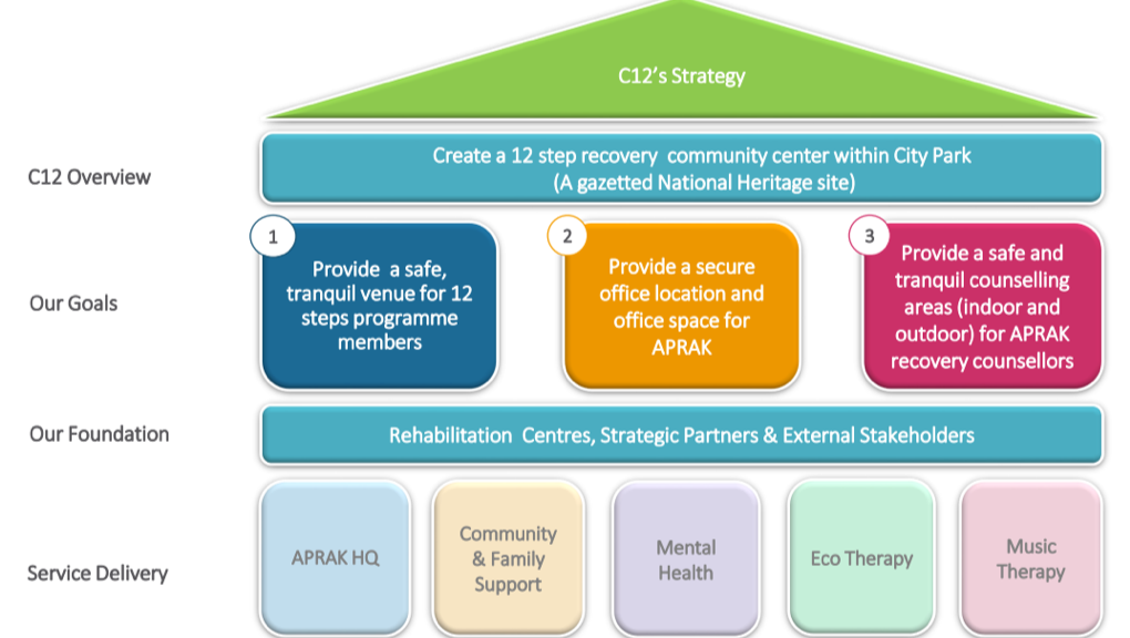 APRAK’s collaboration with the historic City Park in Nairobi led to the formation of C12 - C for the famed “City Park” and 12 for the 12-step recovery program, which is at the heart of APRAK. C12 offers many services in various areas of support of mental health and recovery from addiction, with more to be added, such as Creative Arts/Music Therapy.