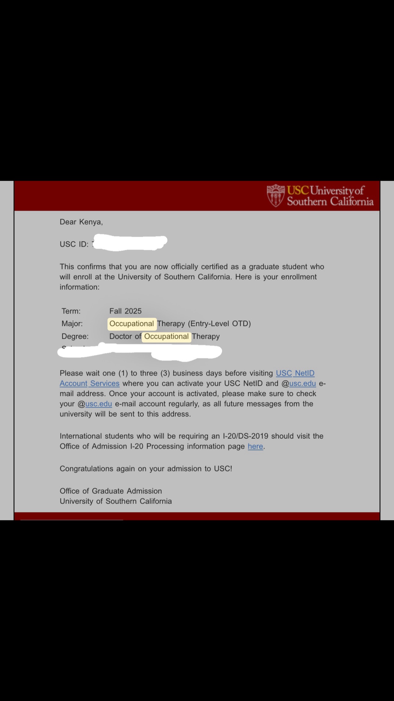 I am a first-generation college student and AB540 Dreamer recently accepted into the Occupational Therapy Doctorate (OTD) program at the University of Southern California (USC). My dream is to become an occupational therapist specializing in neurorehabilitation to serve children, adults, and underserved communities.