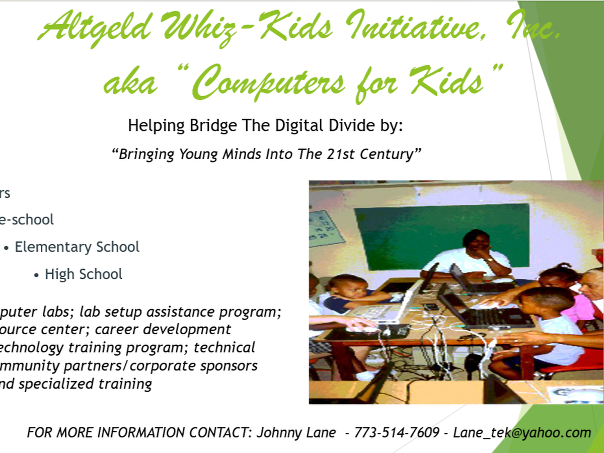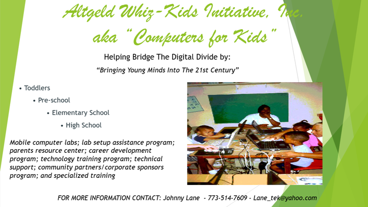 Hi, I'm Johnny, but close friends and family call me Red. After 30 years in Information Technology, I have retired and started a not-for-profit organization called "Altgeld WhizKids Initiative, inc." with the mission to train a half million kids to be better students by using computers and educational software.