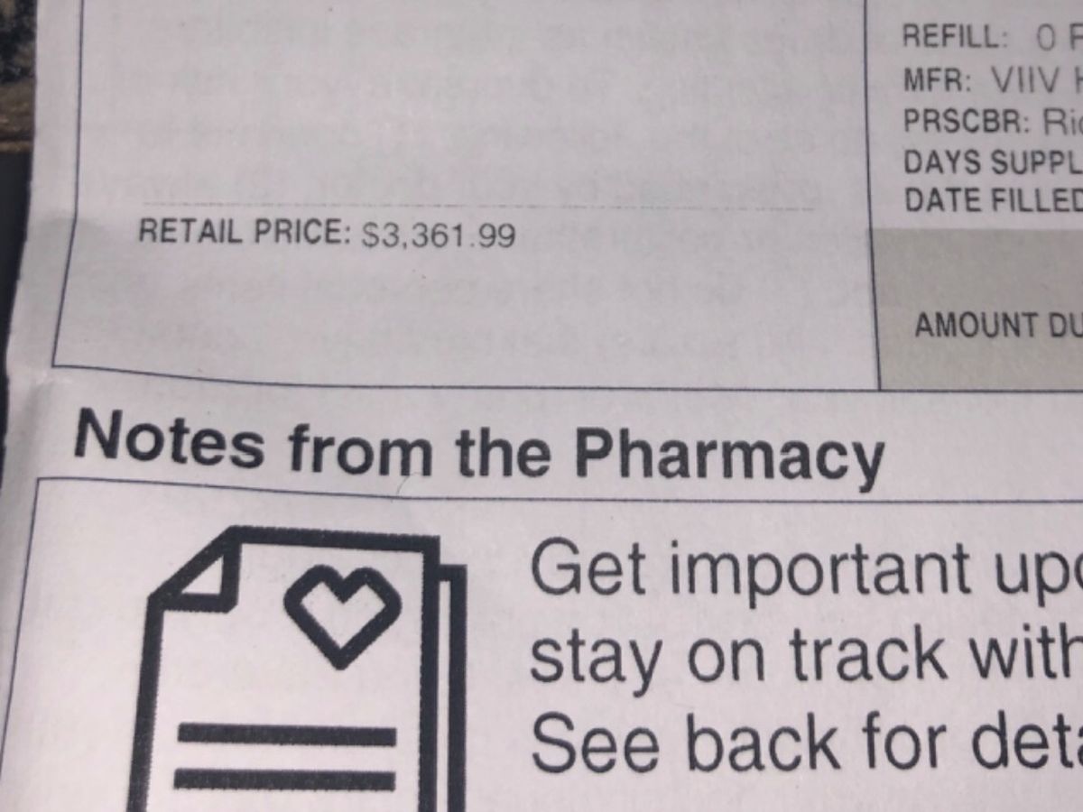 The picture you see is the cost of life-sustaining medications for a month for me, for HIV.