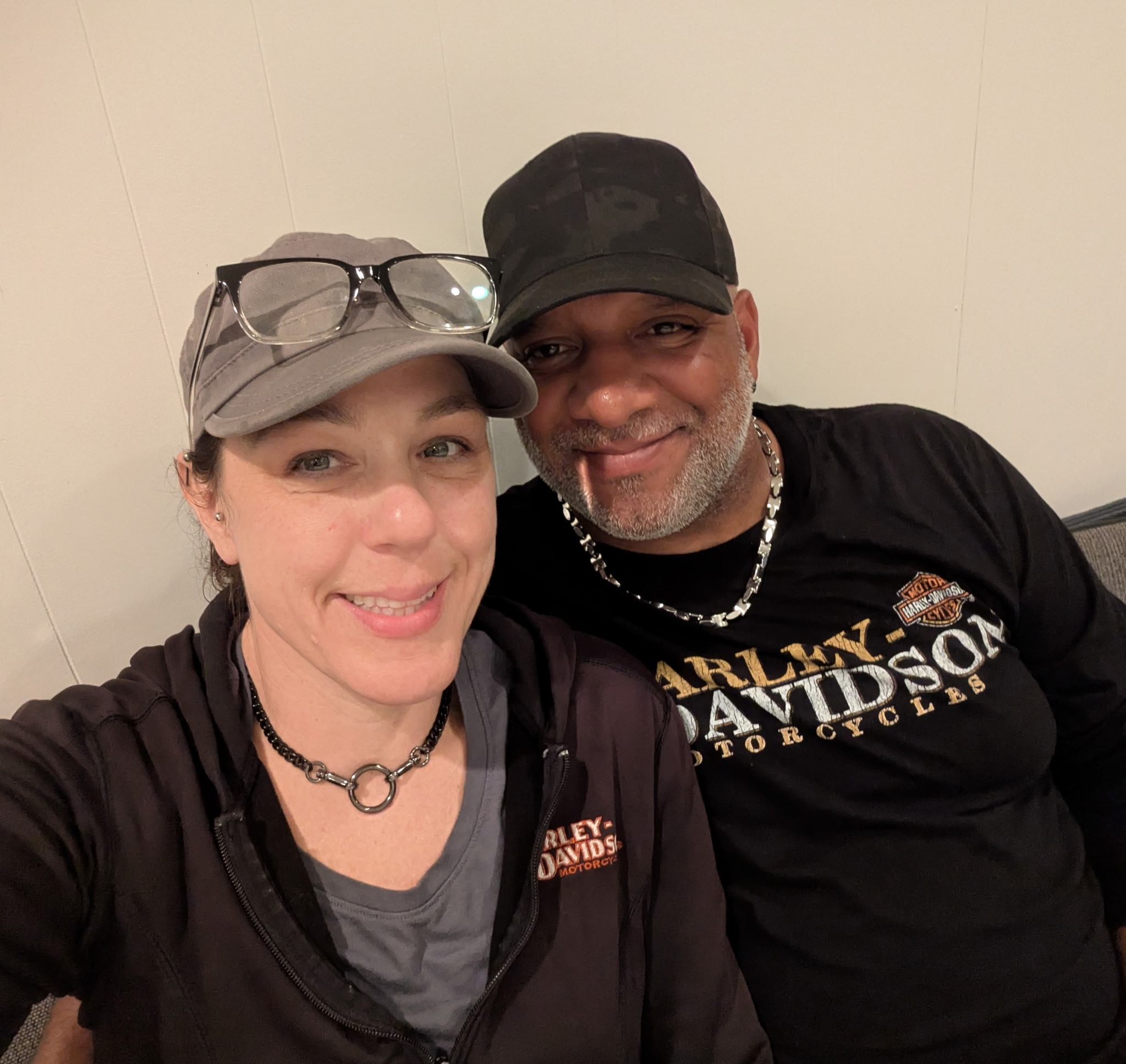 They were minding their business heading home in the left lane on Rt 80 West between Wayne and Rt 287, Greg at the wheel, Mickey on the back, when an aggressive driver sped up on them swerving multiple lanes. When he pulled in front of them, he clipped the front tire of the bike and sent them into the grass median. Greg miraculously kept the bike upright down the embankment but lost control as it started up the other side of the gully. The bike went down, and they were both thrown off. Mickey was sliding on the grass long enough to think “stay loose, stay loose”. When she came to a stop she was unable to get up because of the pain but gratefully she could still move all her limbs. Unfortunately, her right wrist was shattered, and she had to have emergency surgery, and plate and nine screws to reassemble her wrist. Greg suffered a torn collar bone, separated from his sternum that is inoperable due to proximity to his heart, fractured ribs and a fractured ankle.