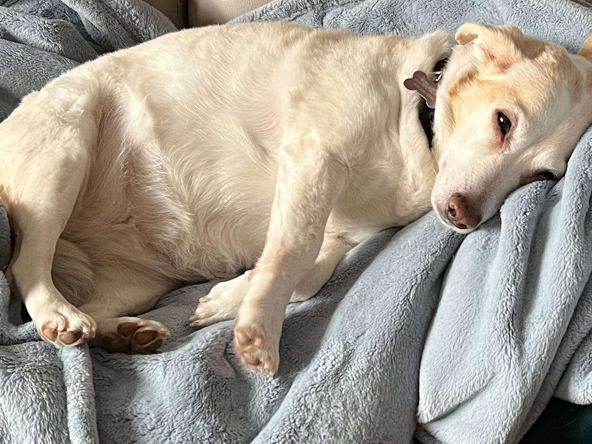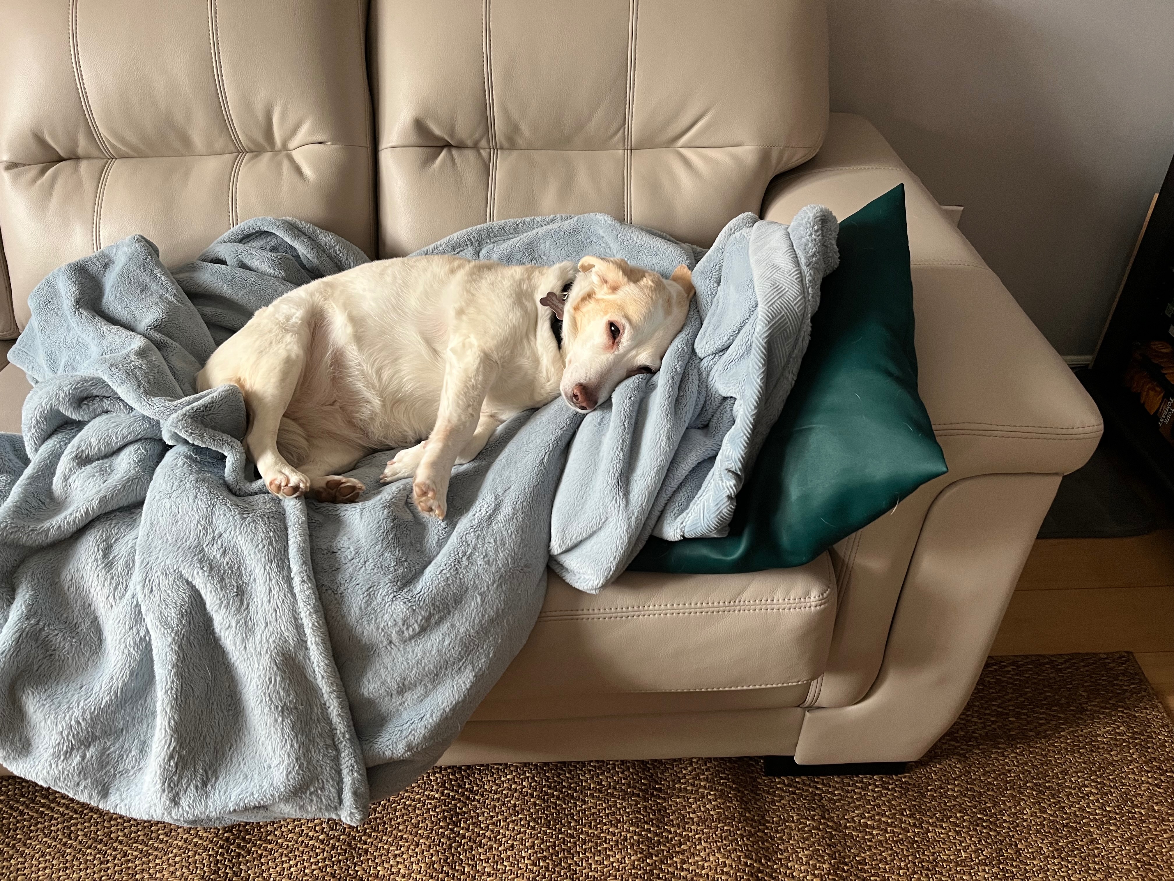 She is a very special, incredibly sweet dog, who has slowly been gaining confidence since she was rescued 3 years ago. She has been through a lot and was now living her best life (endless snuggles and couch time with her favourite blanket).