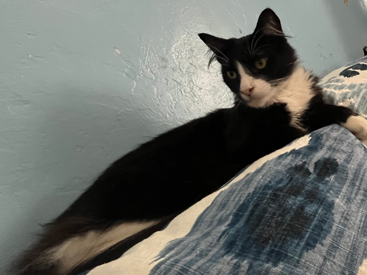 Three years ago, when I was just 15, walking home from school, I found him in a dumpster as a tiny, feral kitten. He was scared of people, unsure of the world, but with patience and love, he transformed into the sweetest, most affectionate cat. He adores kids, cuddles with you when you're sad, naps beside you when you’re tired, and even eats dinner next to me in his little bowl. He has been my constant companion through everything, and I can’t imagine life without him.