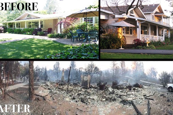 Above is the picture of before and after. Please help spread the wordout by sharing. My Aunt Debbie and Uncle Jack lost everything they owned last night when their house literally burned to the ground in the devastating fires in Santa Rosa. They were forced to leave with nothing more than the clothes on their back in the middle of the night. They have a horse named Blue that they were able to get out safely, Unfortunately thy weren’t able to find their cat or grab any belongings in time as the fire came raging behind them. They have lived in the home for 30 years, it would be so great to help them with clothing, necessities etc. until they get on their feet. Although we are all thankful they are alive their hearts are broken due to this total loss.