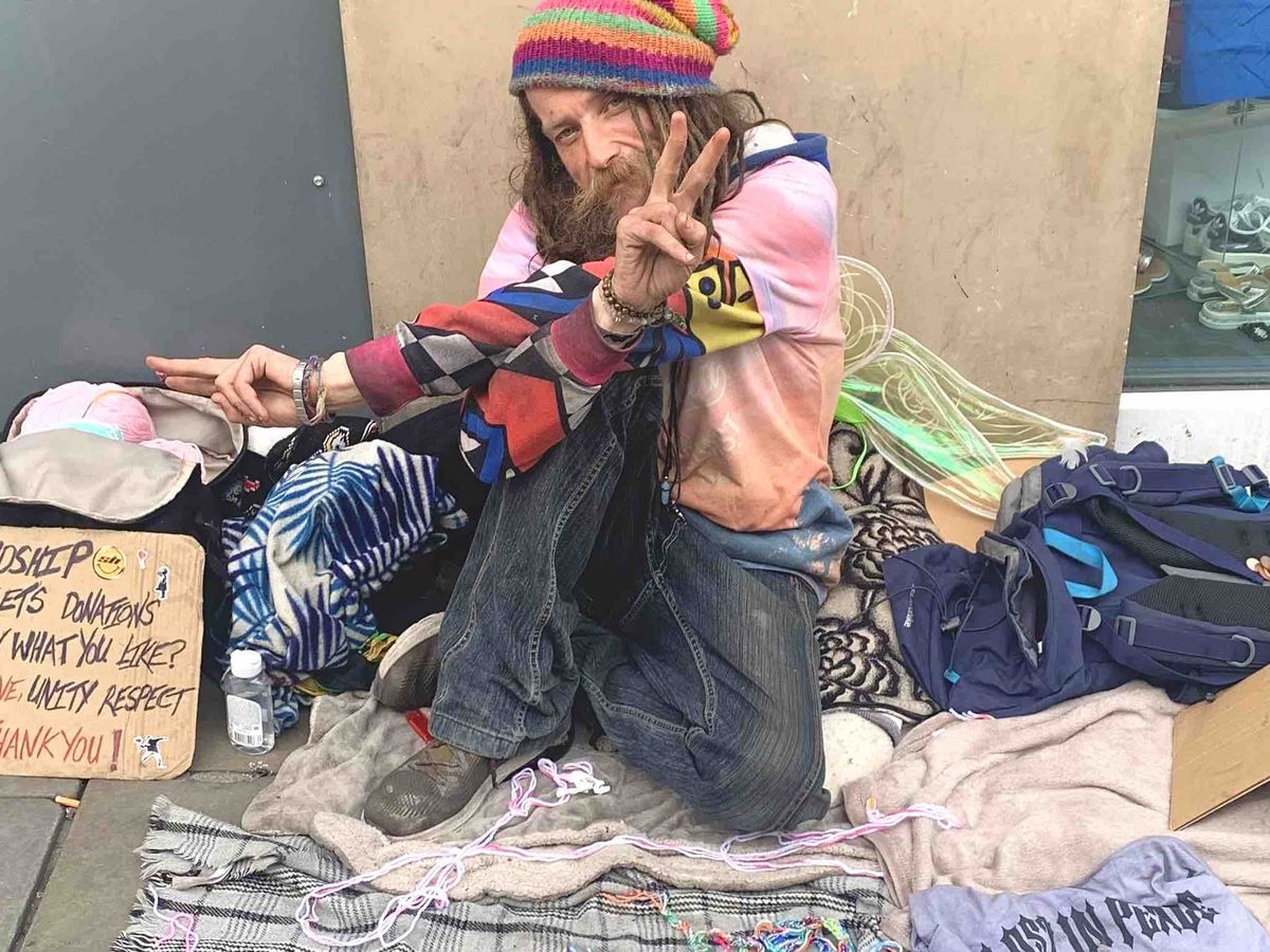 This is James, he lives on the streets in Newcastle. We’ve been visiting him every few days and give him his meals or give him enough money so he has a place to sleep. He has type one diabetes and had a bad turn today.He makes friendship bracelets and asks for a small donation. if you can’t afford a donation he will give you one for free. I’ve noticed something special about James, his kindness is next level. This man has close to nothing but yet he’s still always kind to others. He’s the type of person that if u needed £5 for some food he’d give you it even tho that’s all he has. He writes positive messages on the pavement for everyone but especially for the ones that are having a bad day. Because he knows what it’s like to be going though a hard time. I believe this man deserves so much more in life, he makes everyone he talks too smile. I’m asking for everyone to please share this and if people see him, please give this man a small donation or even a smile. Or ask him to mc as he loves to show people