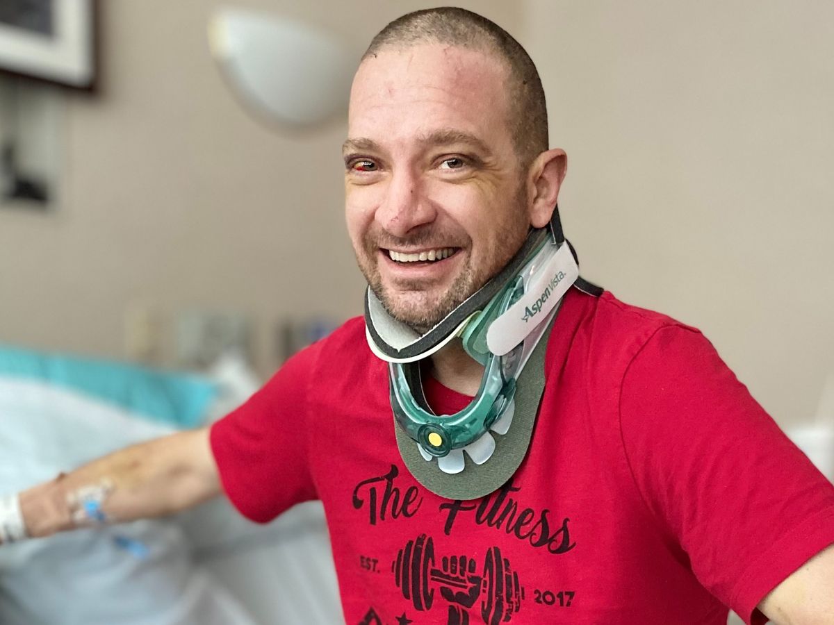 On April 21, 2021 our area had light snow overnight and at 5:30am, James (Jamie) was on his way to work when he hit black ice. Jamie does not remember the accident and all we know is what the responding officers told us. Jamie was headed south and on an overpass he hit the black ice. His truck entered the grass median, rolled, and after hitting the center guardrail he went airborne. He traveled over two northbound lanes and ended upside down on top of the outside northbound guardrail.
