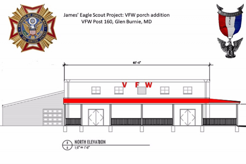 My Eagle Scout project is to build a 2,688 square foot concrete patio and roofed porch that will provide a space for outdoor seating and entertaining, protected entry, and improve curb appeal for the Harry L. Cooper V.F.W. Post 160 building.