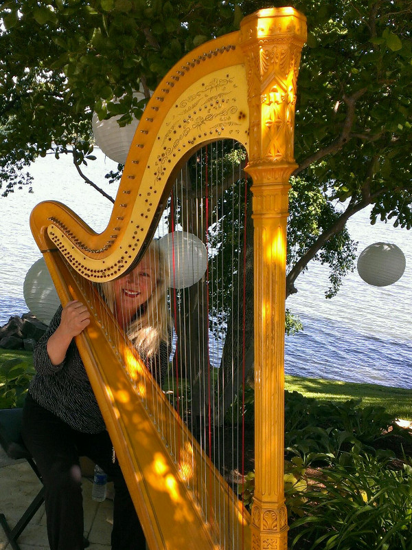 I'm a professional harpist. I perform at restaurants, house concerts, grocery stores (Kroger every Sat!), teach lessons, weddings, funerals. In short, I make a living from my craft. I'm trying to raise money to help purchase a new harp as the one I'm using is quite old and won't last much longer. The harp I'm trying to purchase is a Camac ElectroAcoustic model- which means it has pickups built in to every string so you can plug it in to an amplifier or play it acoustically. The specific harp is called Camac Big Blue. You can find it by going to Virginia Harp Center or click the link below. As you will see when you click on the price list the retail is almost right at $30,000. I believe I can save the last $10,000 of the price myself. But, I will need help with the bulk of the cost and that's where you, my friends, come in. Any amount you are able to give will be put toward my goal of owning Big Blue. In return, I will send you a copy of my new CD, On the Road, a compilation of original music by me and my arrangements of some of my favorite classic rock tunes, like Nothing Else Matters by Mettalica. The CD is currently being pressed and will be available in two weeks. It features my harp/guitar duo, Groove Machine. My guitarist is the incomparable Casey Harshbarger.