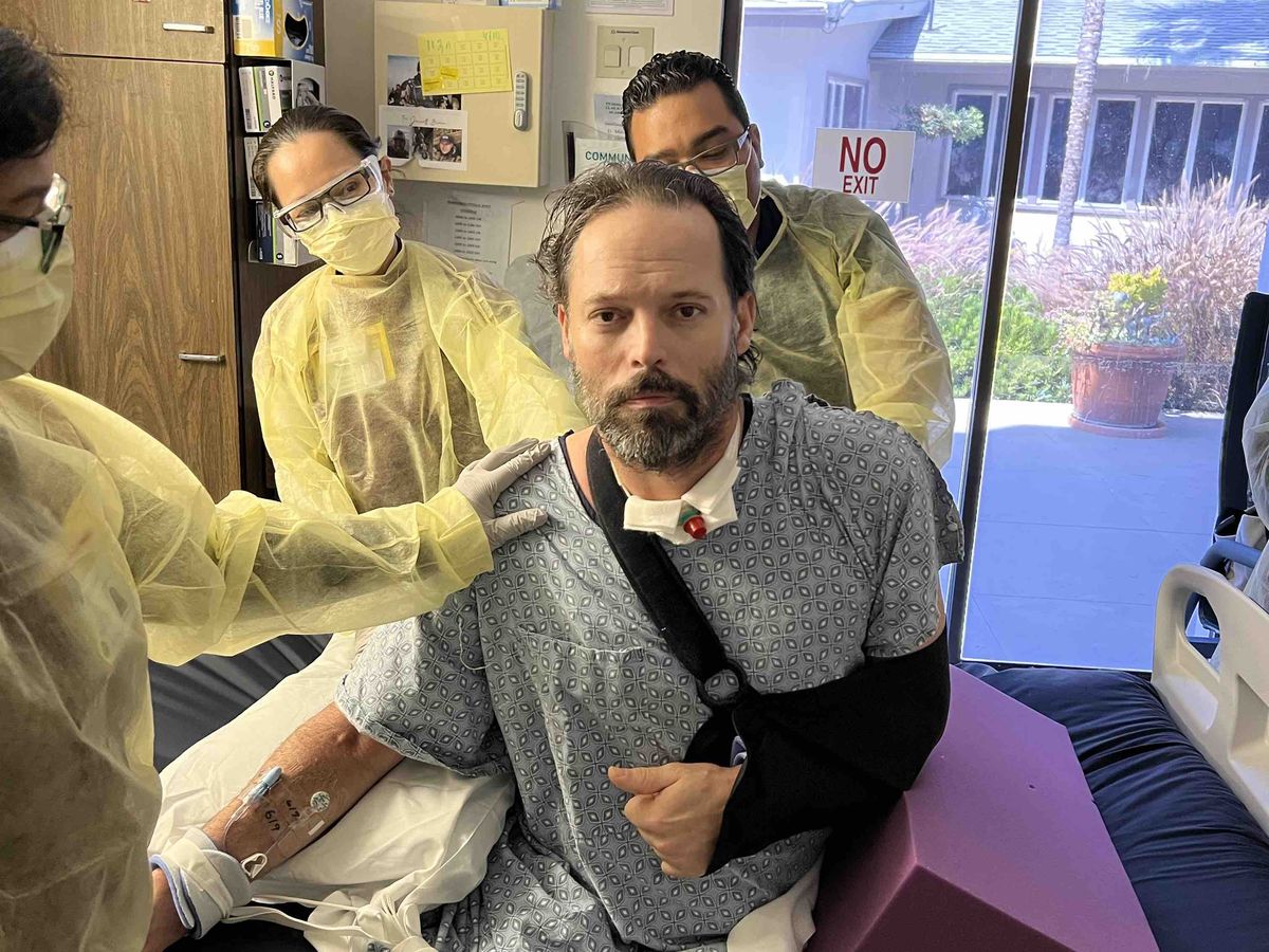 6/11/22 UPDATE Jarrett sits with help for the first time in 42 days. He still has no memory of why he is in the hospital or why speech is so difficult. Please continue to pray for him.