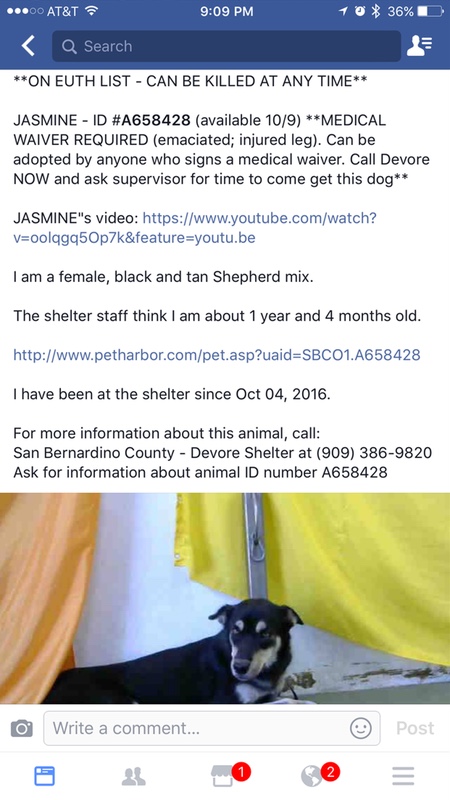 Jasmine desperately needs your help paying for her leg (tibia reconstruction) surgery. She has no owner and no home. Jasmine was going to be put down in a high-kill shelter in California. Sitting at the shelter (video above) with no medical treatment, emaciated-about the meet her untimely fate. We (GPR) rescued her and she will be fostered at my house until she can be adopted. Please help us pay for her surgery. We are relying solely on donations for this poor girl. So sweet and so friendly. She deserves a second chance up her in the comfort of the NW.