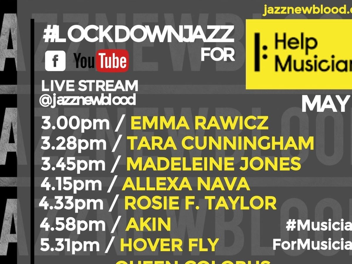 Jazznewblood (jazznewblood.org) teams up with amazing musicians to raise funds for the Help Musicians organisation. On May 21st between 3 and 7 pm, almost 4hours of exclusive pre-recorded performances will be live-streamed @Jazznewblood FACEBOOK and YOUTUBE (youtube.com/jazznewblood) pages.