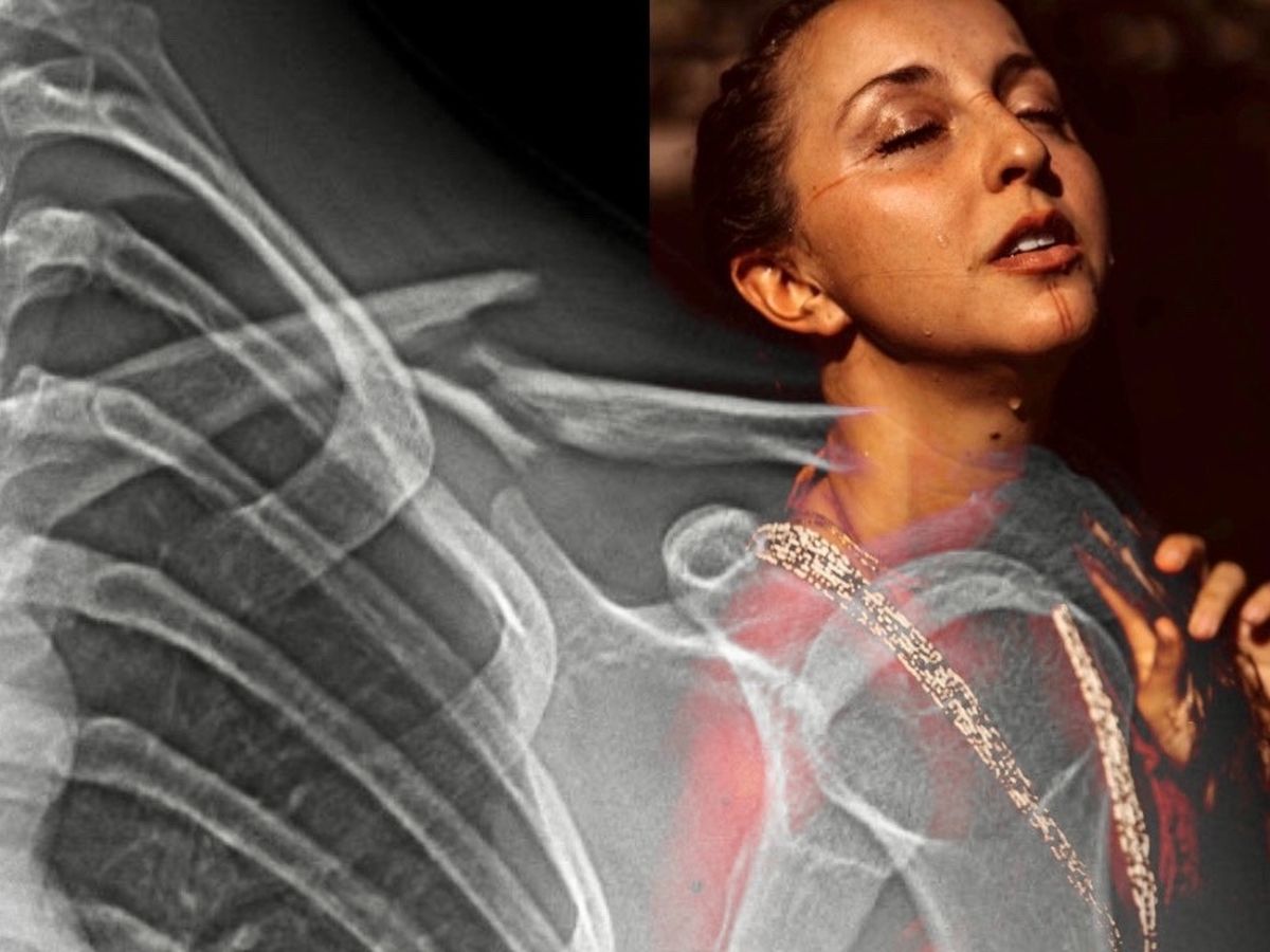 She has been in excruciating pain since the accident and needs to fly back to the states ASAP to get emergency surgery - as the bone is poking into her lungs and vocal chords and protruding like a knife edge up into her chest.