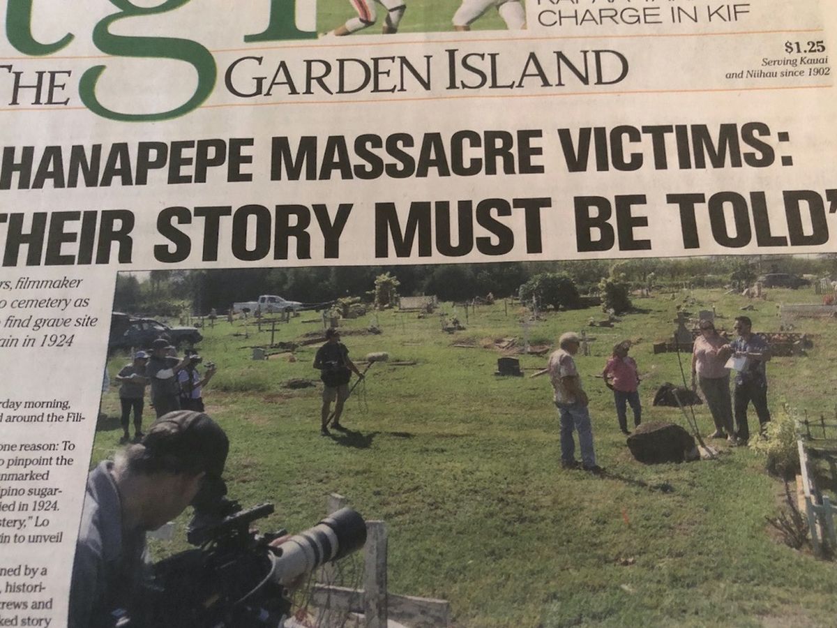 When I heard a group of community researchers here on Kaua'i were looking for the unmarked grave of the 16 Filipino sugar cane workers, my team and I jumped into action. On Sept. 29, we were there at the Hanapepe Filipino Cemetery to film the community researchers and their search.