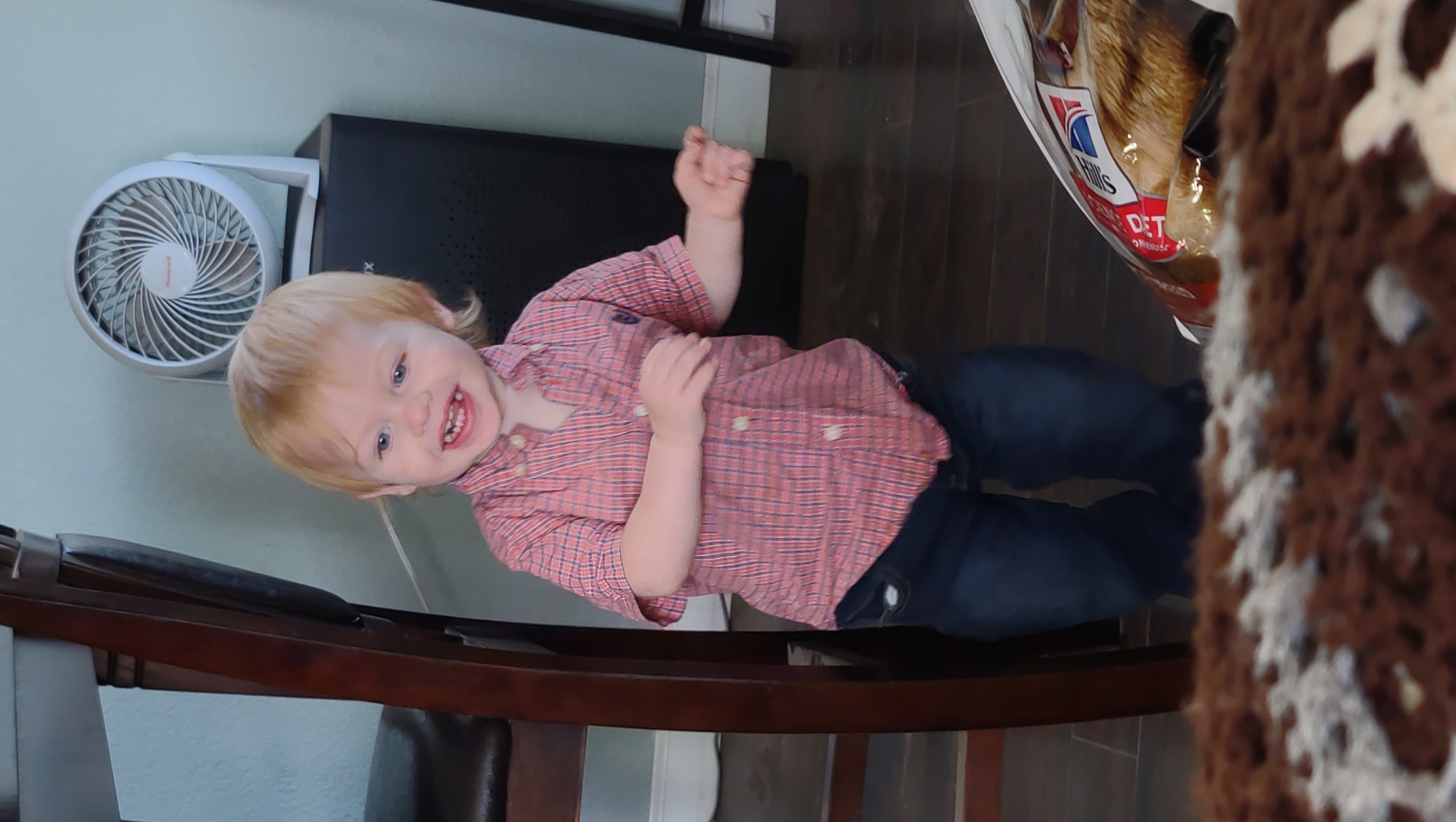 James is 22 months old and a joy to be around. He loves dinosaurs and trucks and always has a smile on his face. His laugh is contagious and he's rarely in a bad mood. He loves chickens and enjoys feeding them treats with a giggle when he tries to pet them and they run. He loves cuddles, fist bumps, and high fives.