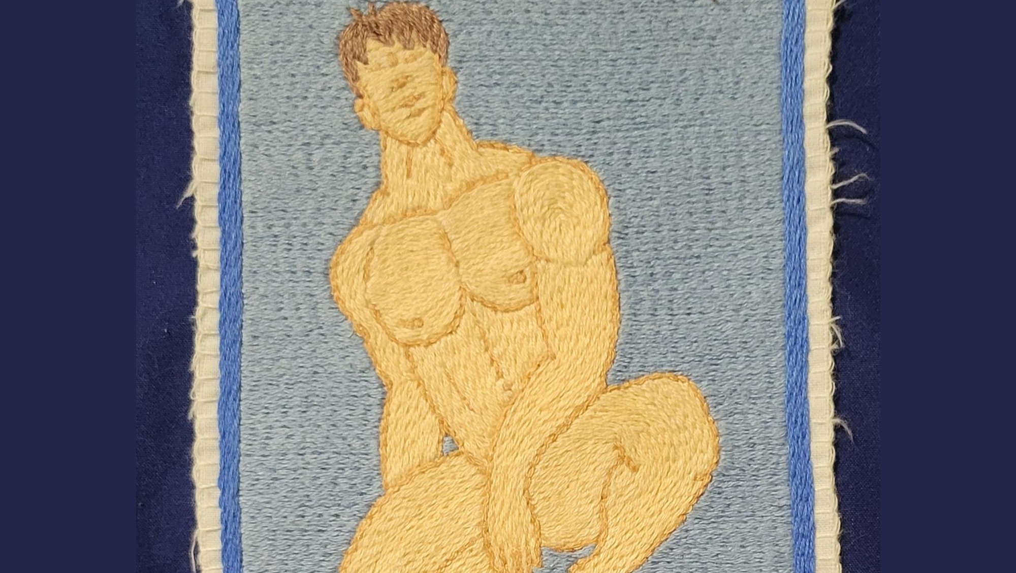 5. Naked man tapestry (fully embroidered background) approx 6x4