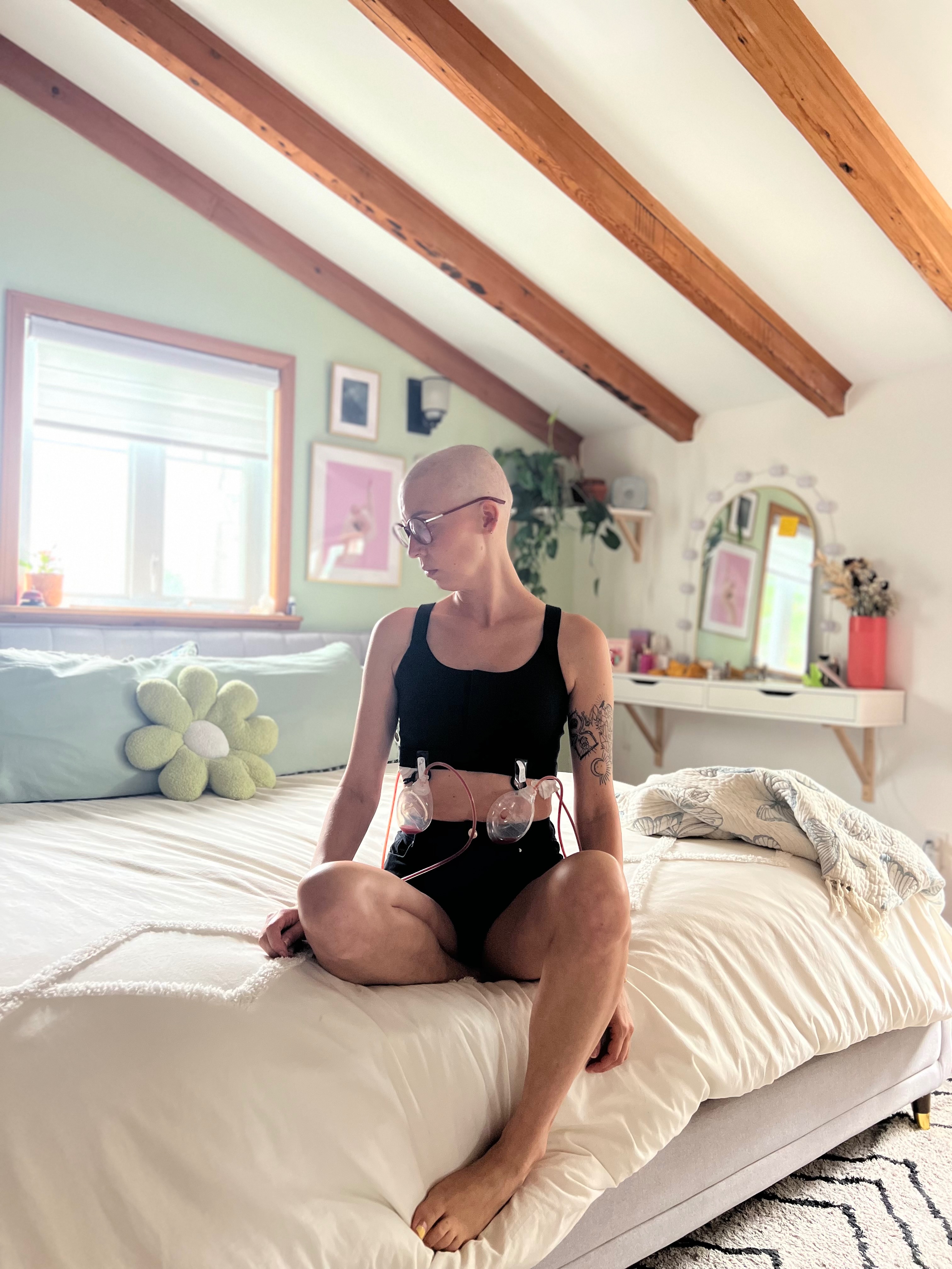 Puis 2 AC : la tumeur ne semblait pas se résorber donc on m’a opéré d’urgence pour une double mastectomie totale avec reconstruction.