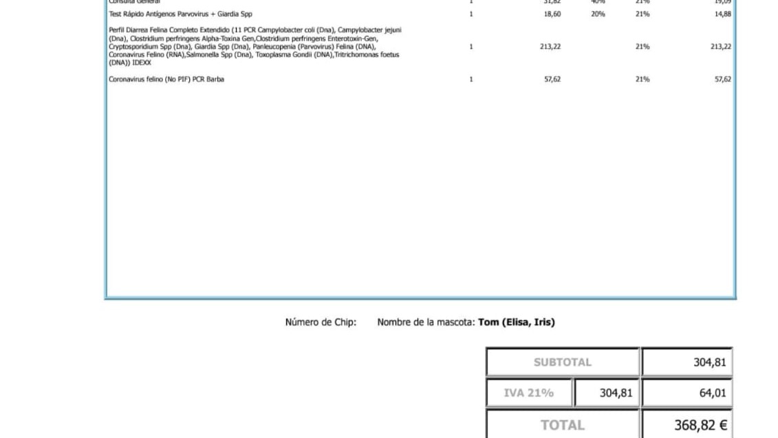 Una vez acabado el 2024 han quedado varias facturas veterinarias por pagar. Atendí a unos gatitos de una señora que falleció y me hice cargo de Tom, Lucas, Maxi y Geko