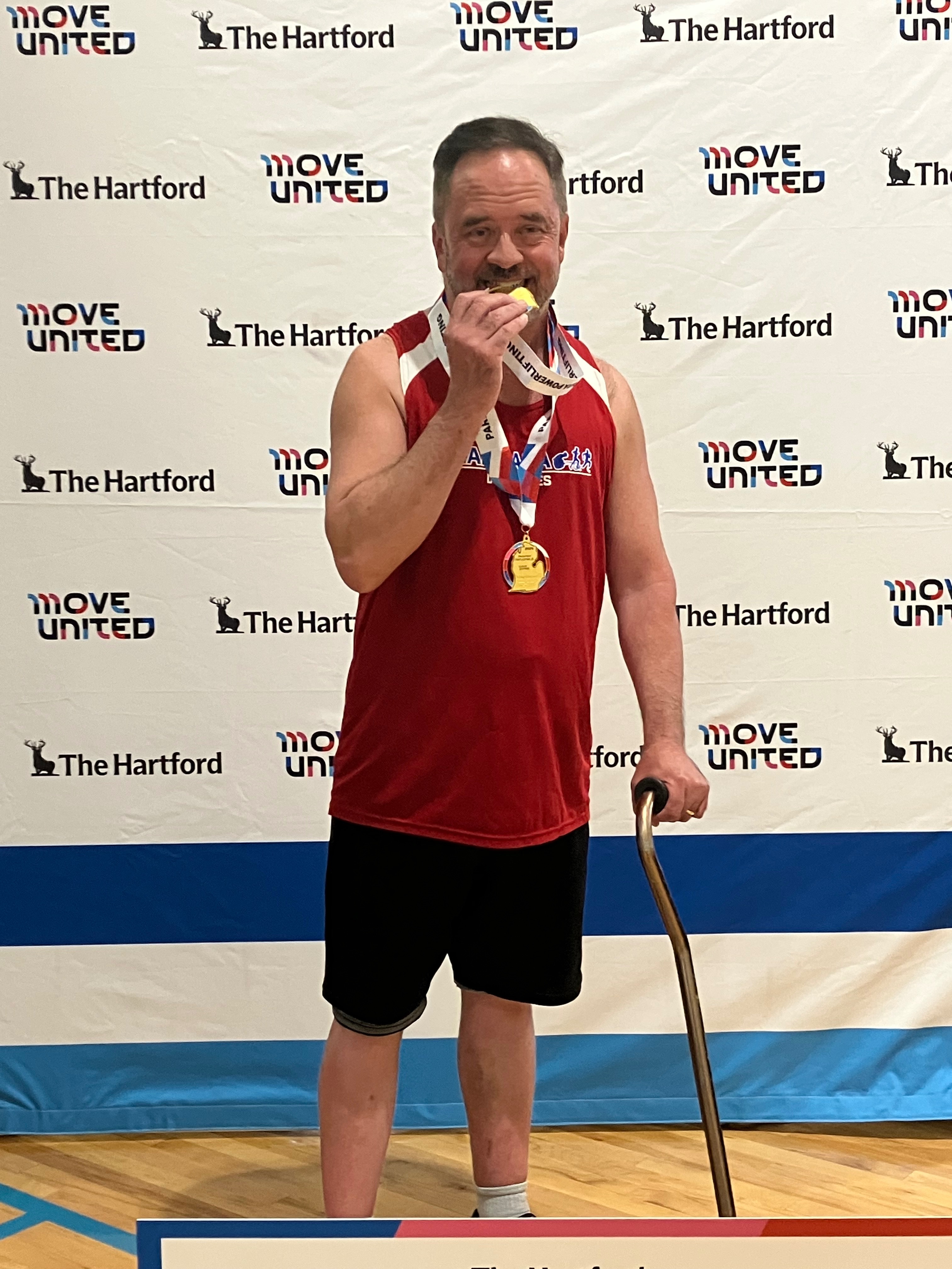Unfortunately, like so many other things, the funding for the Paralympics has been greatly reduced. Therefore, the qualifying Paralympians are responsible for raising more money on their behalf. My event for the Winter Paralympics will be downhill skiing, and for the Summer Paralympics, it will be bench pressing. In July of this year, I was fortunate enough to win two gold medals at the nationals competition in bench pressing. The first gold medal was for winning my competition, and the second gold medal was for setting a new record. I was as shocked as anyone else! I like to think of this as giving the big finger to MS and to age. I may have MS, but MS does not have ME!!! I want to prove that people with disabilities who are older can do incredible things if they put their minds to it.