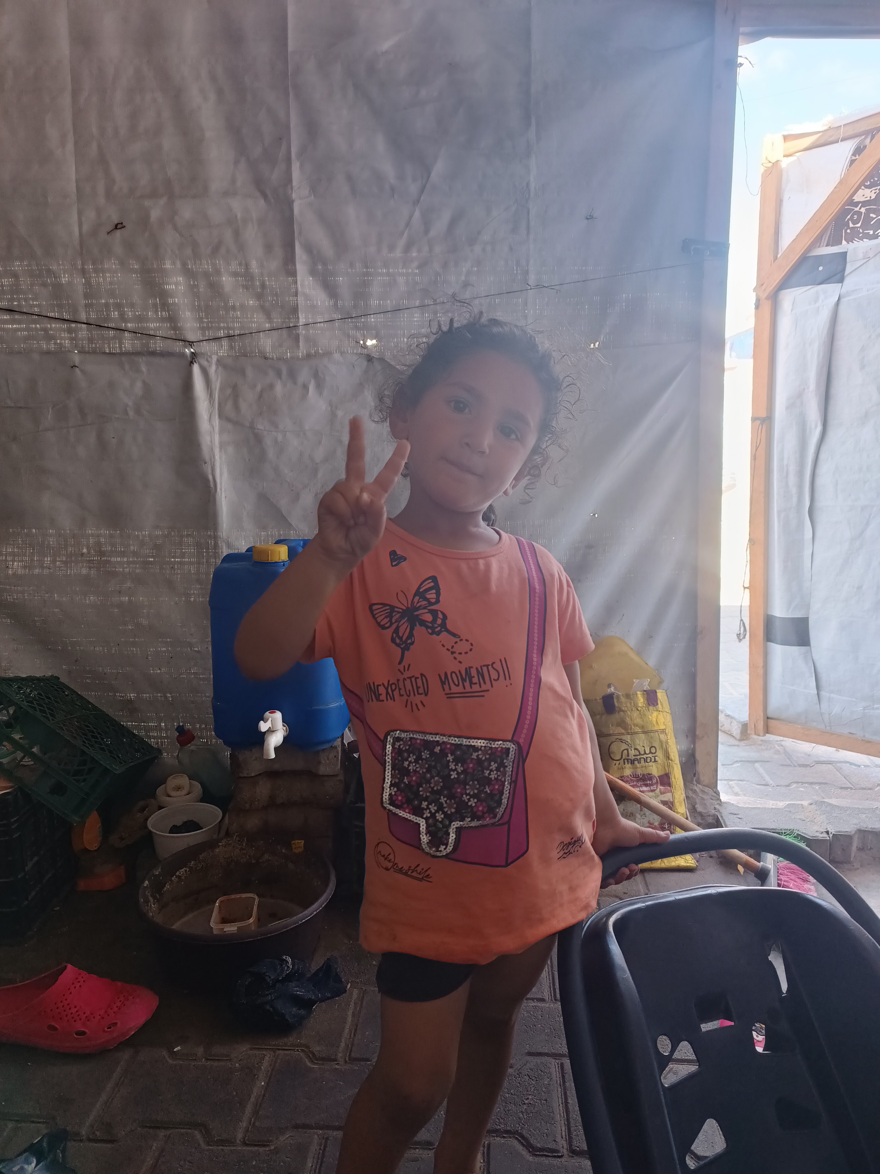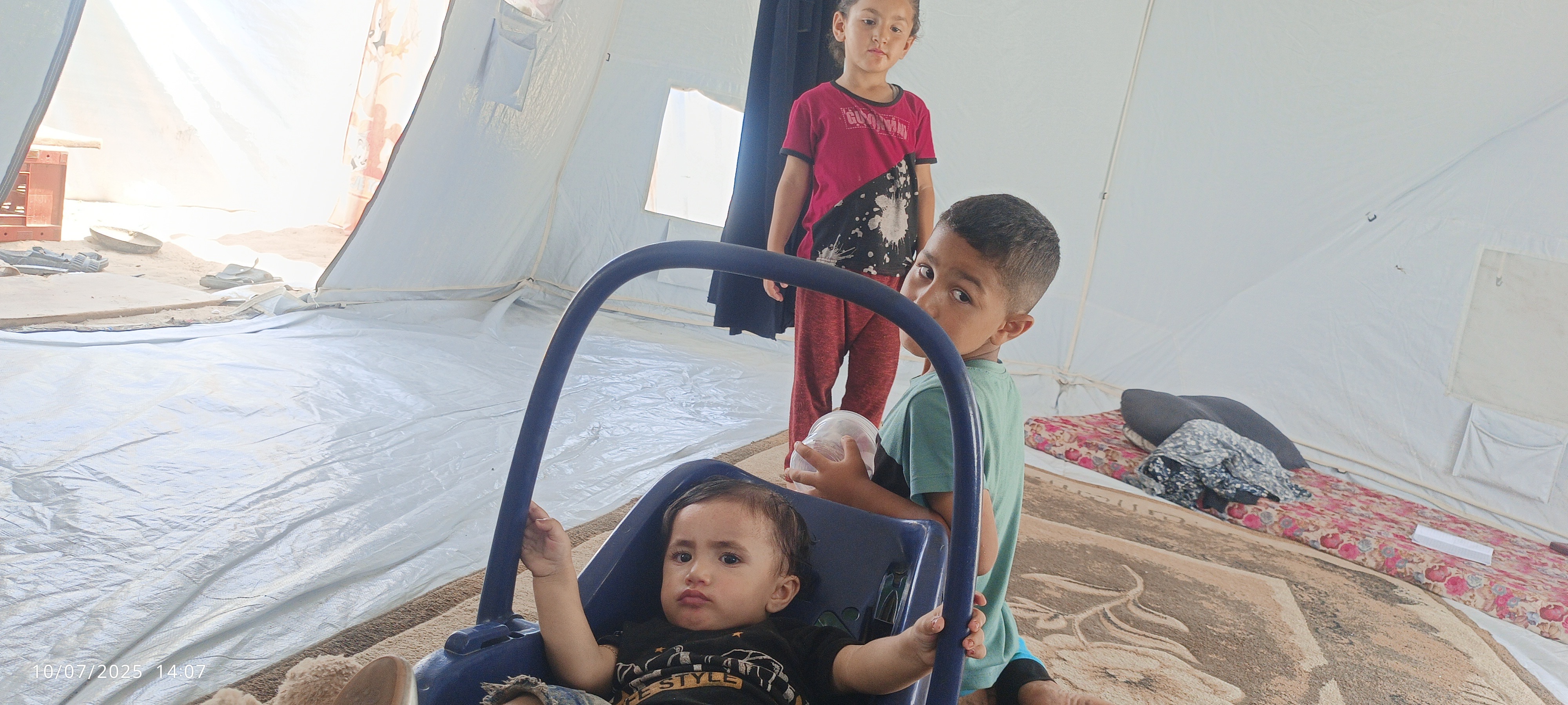 Leur famille a été déplacée à Mawasi il y a quelques mois, ils ont dû quitter leur maison à Khan Younes, suite à un ordre d'évacuation. Ils vivent actuellement dans une tente à 12. Nour, ses parents, ses grands-parents, ses oncles, sa tante et ses cousins/cousine peinent à survivre dignement.