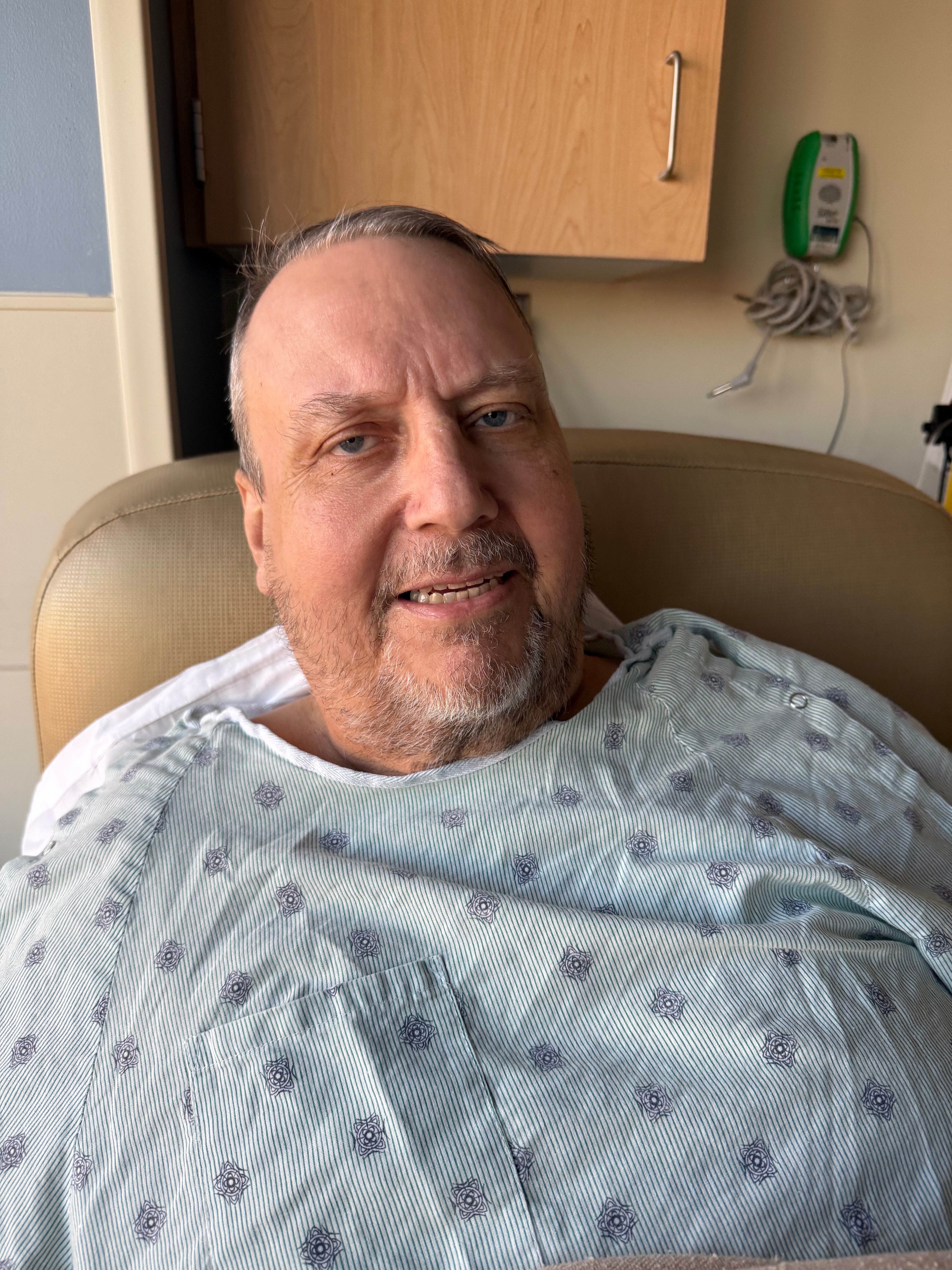On Tuesday November 11, 2025 Rick went to the Emergency Room with pain in his knee . The doctors found an infection and diagnosed Rick with cellulitis in his knee. The infection continued to spread Wednesday and Rick began showing some confusion and increased pain in his back. Doctors become worried about him becoming septic. A scan was completed on his back and more infection was found in his spine. Thursday they transported Rick to another hospital so he could meet with the neurologist. At this point it became a race against time. Doctors wanted to do surgery as soon as possible as they were worried he could become paralyzed from the infection in his spine. Because Rick is on medication for blood clots, his blood was too thin to operate. On Friday doctors and nurses worked hard to thicken his blood as fast as they could. Rick’s pain continued to increase along with his confusion. Saturday November 15, 2025 Rick had surgery on his back, a laminectomy. By the grace of God surgery was successful.