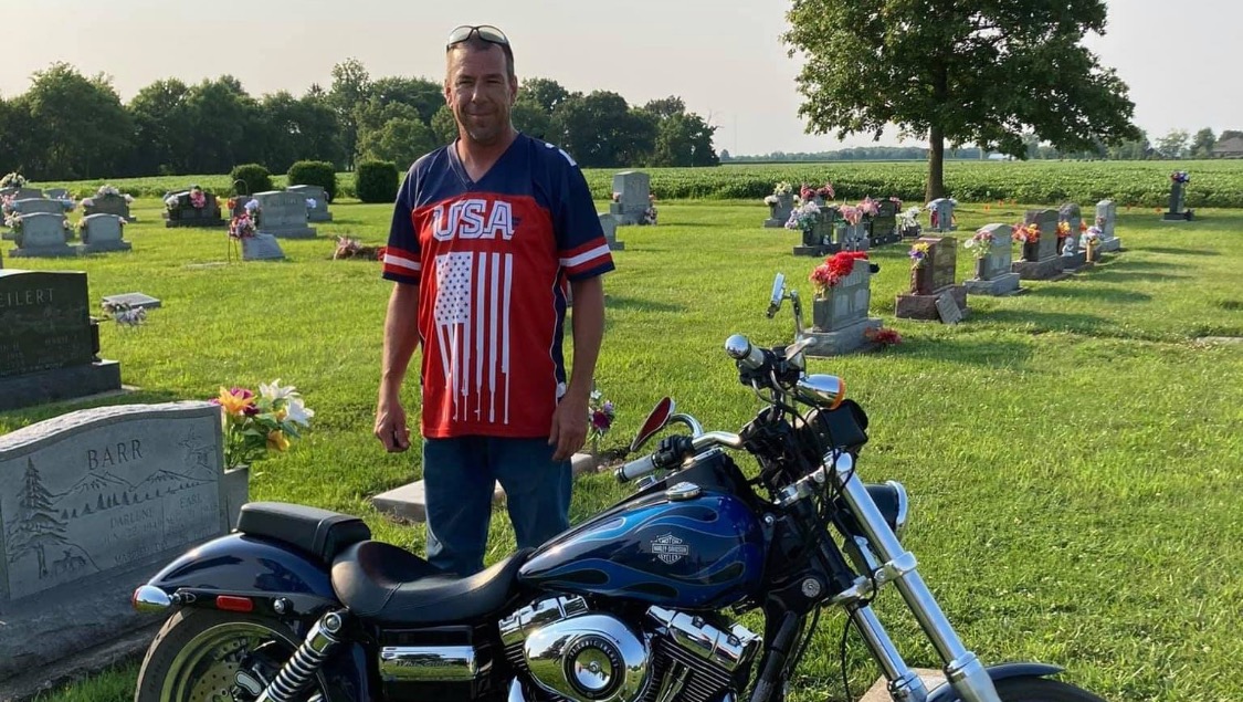 This was a few years ago when Jody proudly visited our dad’s grave with his “baby” his Harley Davidson