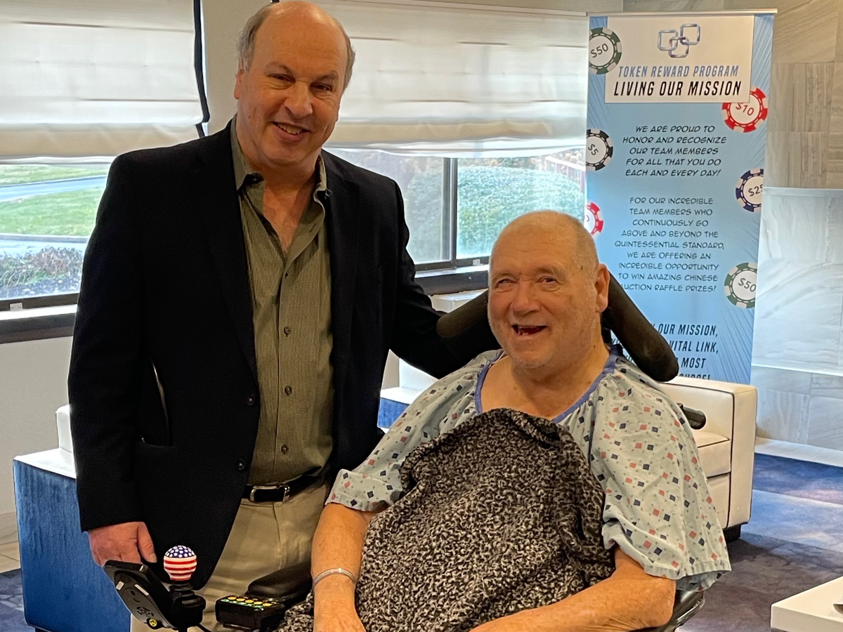 This is Joe A’s story. I'm the guy standing next to him. I'm Joe's doctor, Dr. Stadlen. I've been taking care of Joe at a local nursing home for the past four years. Due to congestive heart failure and circulation problems Joe is confined to a wheelchair. It's really incredible to see how upbeat and driven he continues to be in such a challenging situation. You can also tell that Joe is filled with youthful enthusiasm by the way he buzzes around the nursing home in his newly refurbished electric wheelchair, provided by the physical therapy department.