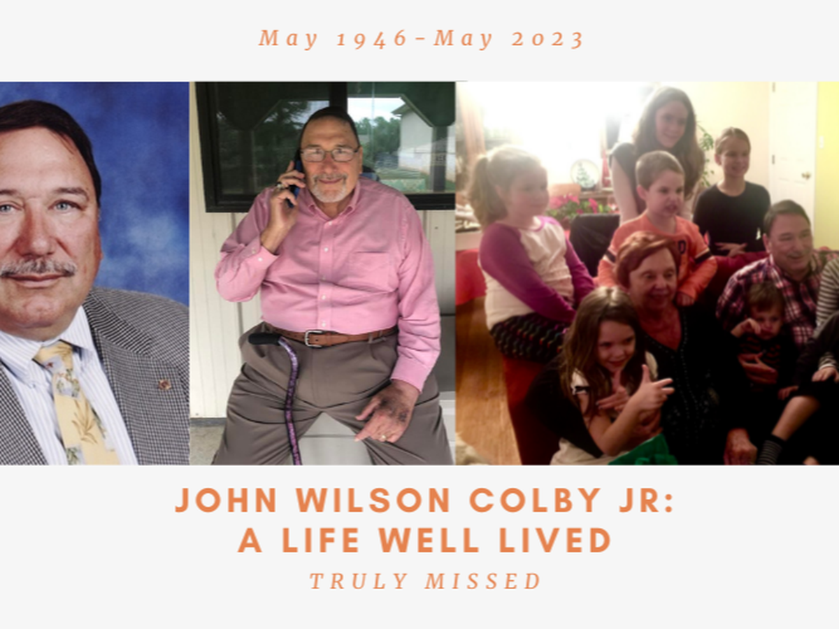 First, I want to thank you for coming here and helping to celebrate and remember my father John Wilson Colby Jr. He passed away on Tuesday, May 30th at ~1:15pm EST, which was just 3 days after his 77th birthday. Whether you knew him as a teacher, coach, principal, friend, neighbor, or family member, your presence here is appreciated.