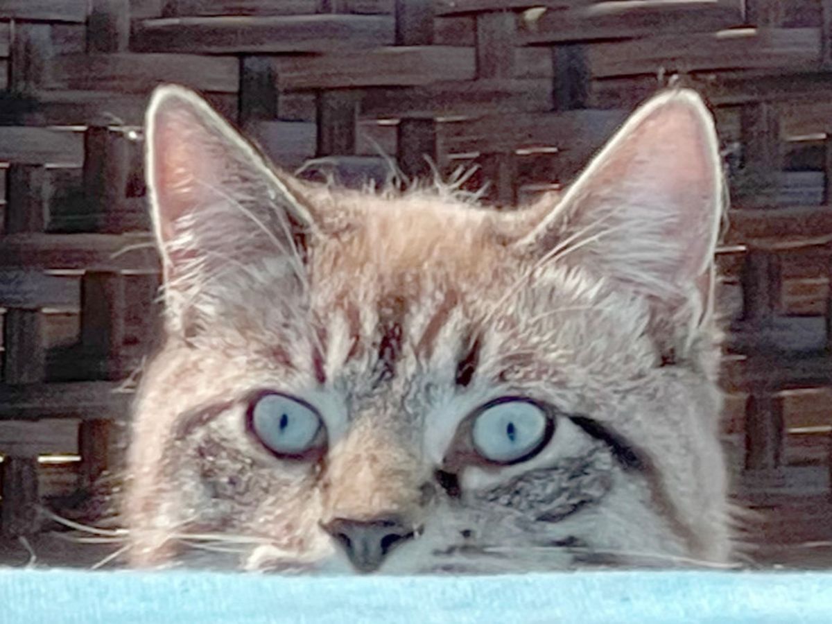 Faced with a big learning curve, it was either jump in or put him down; he wouldn’t likely live more than a few days. He’d been an enthusiastic eight-month-old the week before. He’s one-third of our lively cat family, ready for the best year of his life and one happy guy- so we jumped in.