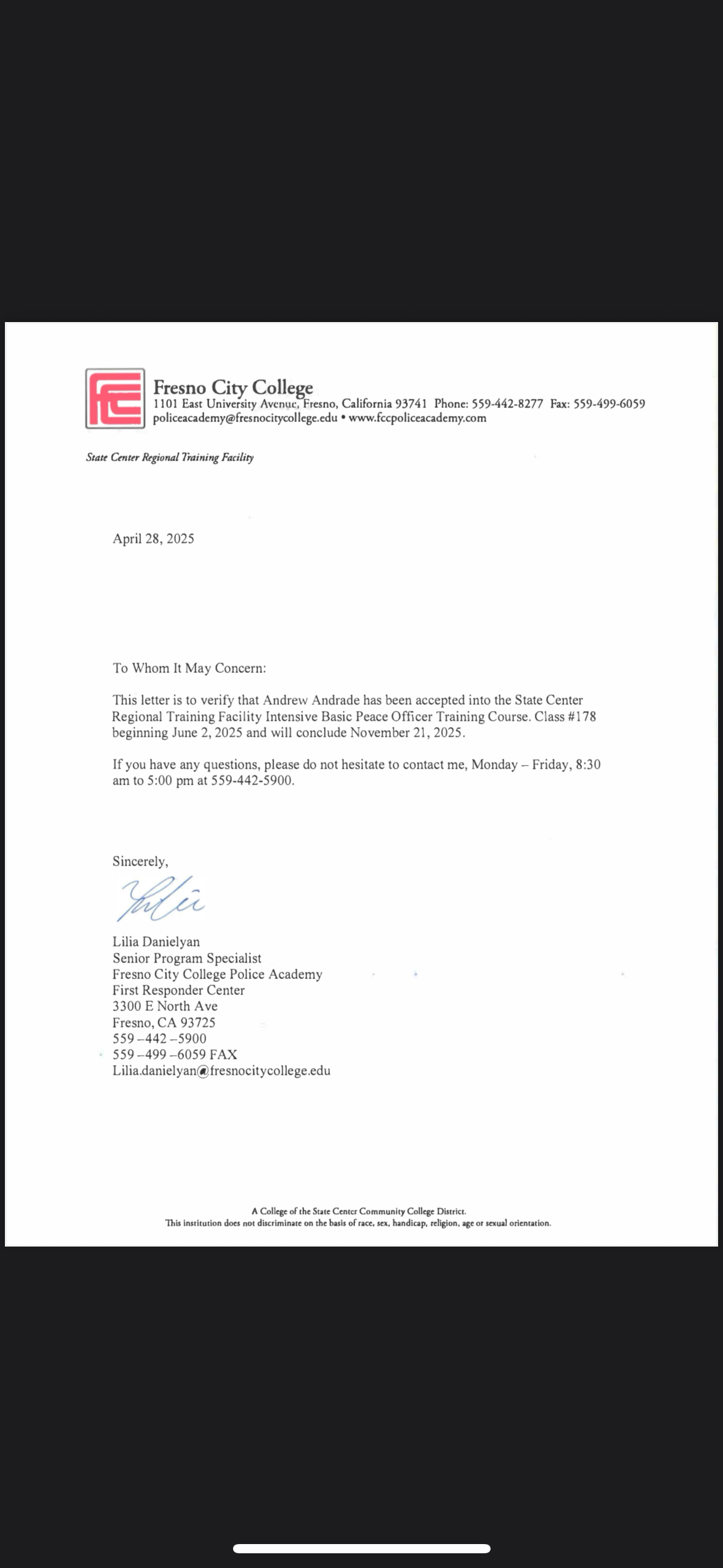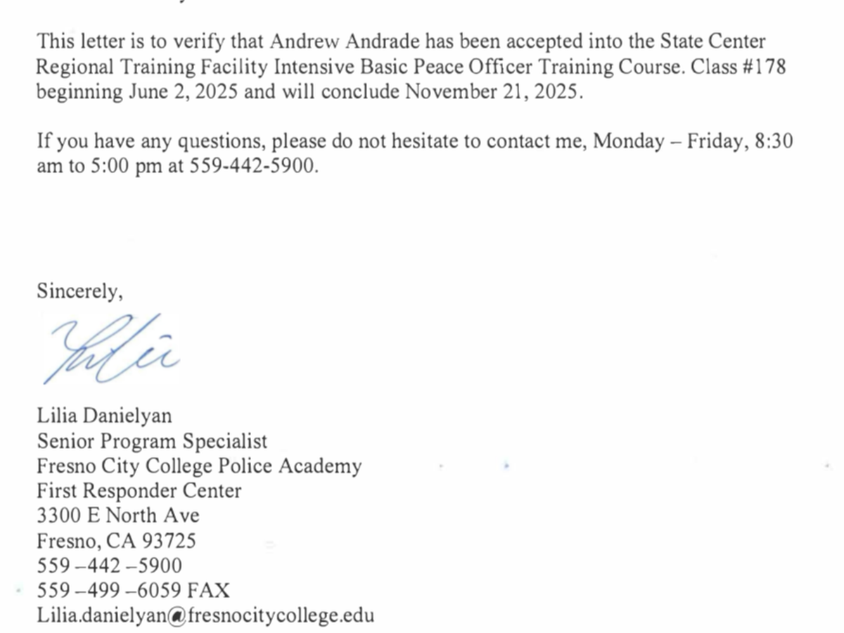 My name is Andrew Andrade. I’m currently asking for some help to cover some of the cost for the police academy, for they discourage working. So, the stress is already high just thinking about financial things.