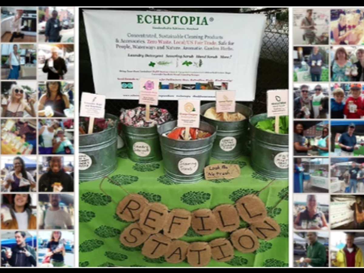 Backstory: In 2015, Echotopia LLC, Maryland's 1st zero-waste business launched its refill-station stall at Baltimore farmers markets. Since then, our customers have prevented 4,300+ trash items. Less trash = cleaner waterways, cleaner air, and soil.