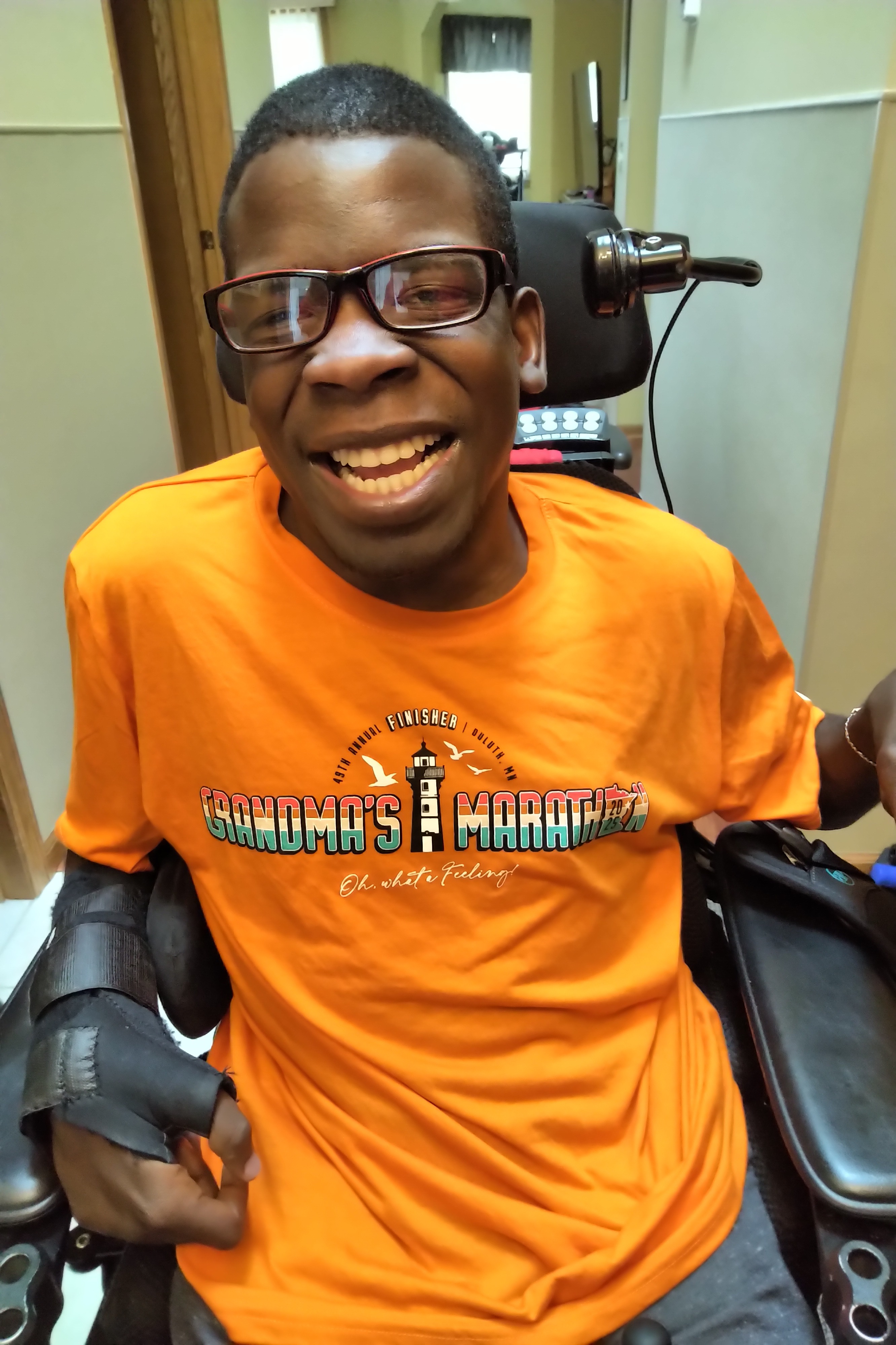 But when he’s out racing, Moses says he feels like his favorite superhero, The Flash. He loves the speed, the cheers, the music, and that moment of victory as he crosses the finish line. Running gives him freedom, independence, joy and distraction from his pain.