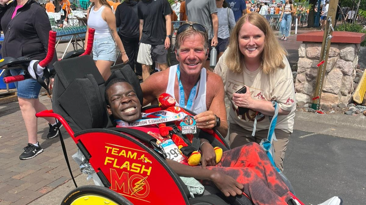 Meet Moses, a young man whose energy and joy light up every racecourse. And meet his running partner and friend, Mark Hulsey, the “engine” of their duo racing team, Team Flash Mo. Together, they’re chasing a dream: to represent myTEAM TRIUMPH Minnesota at the 2026 Boston Marathon!