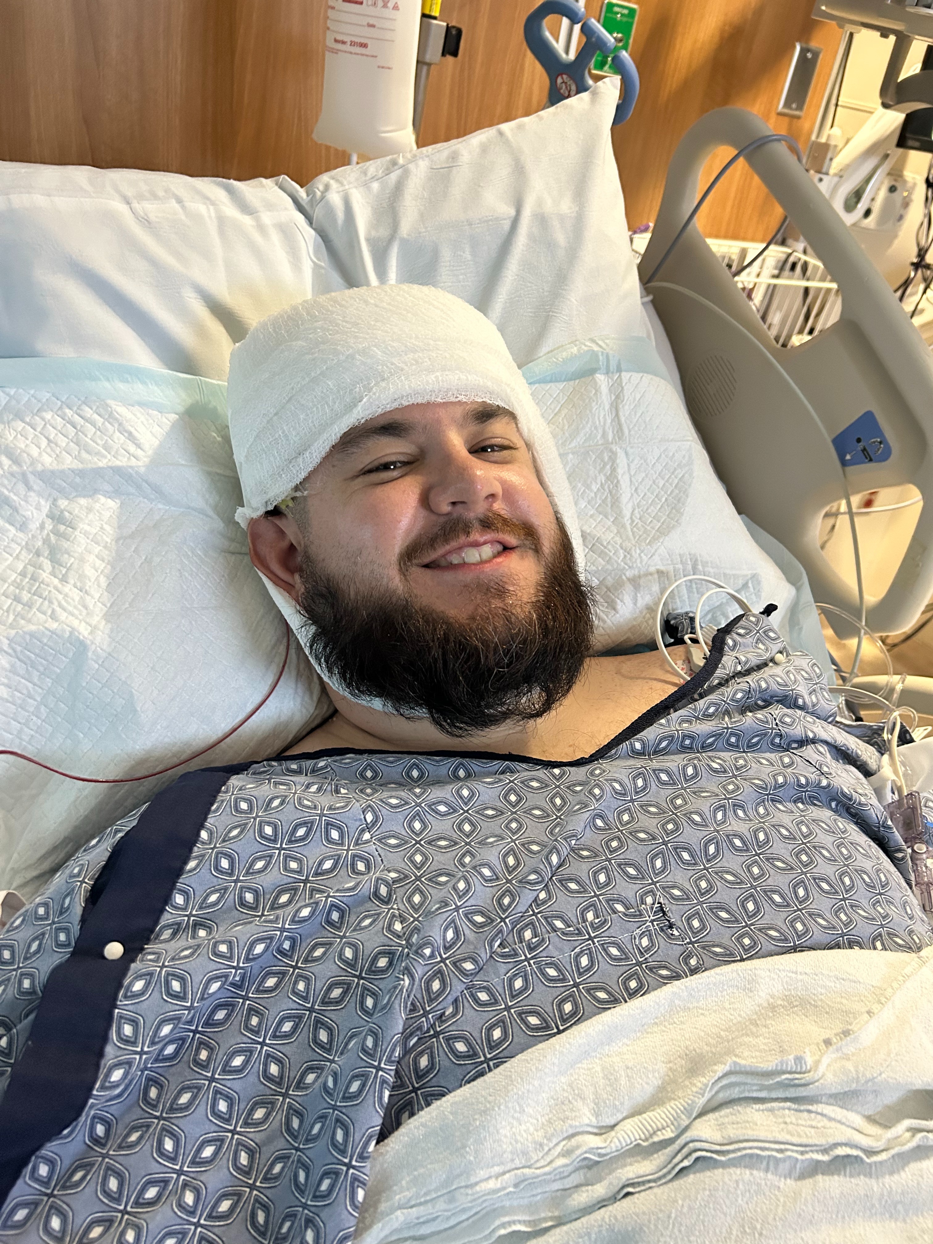 The surgery was a success, and Shawn is currently in the post-op recovery process.