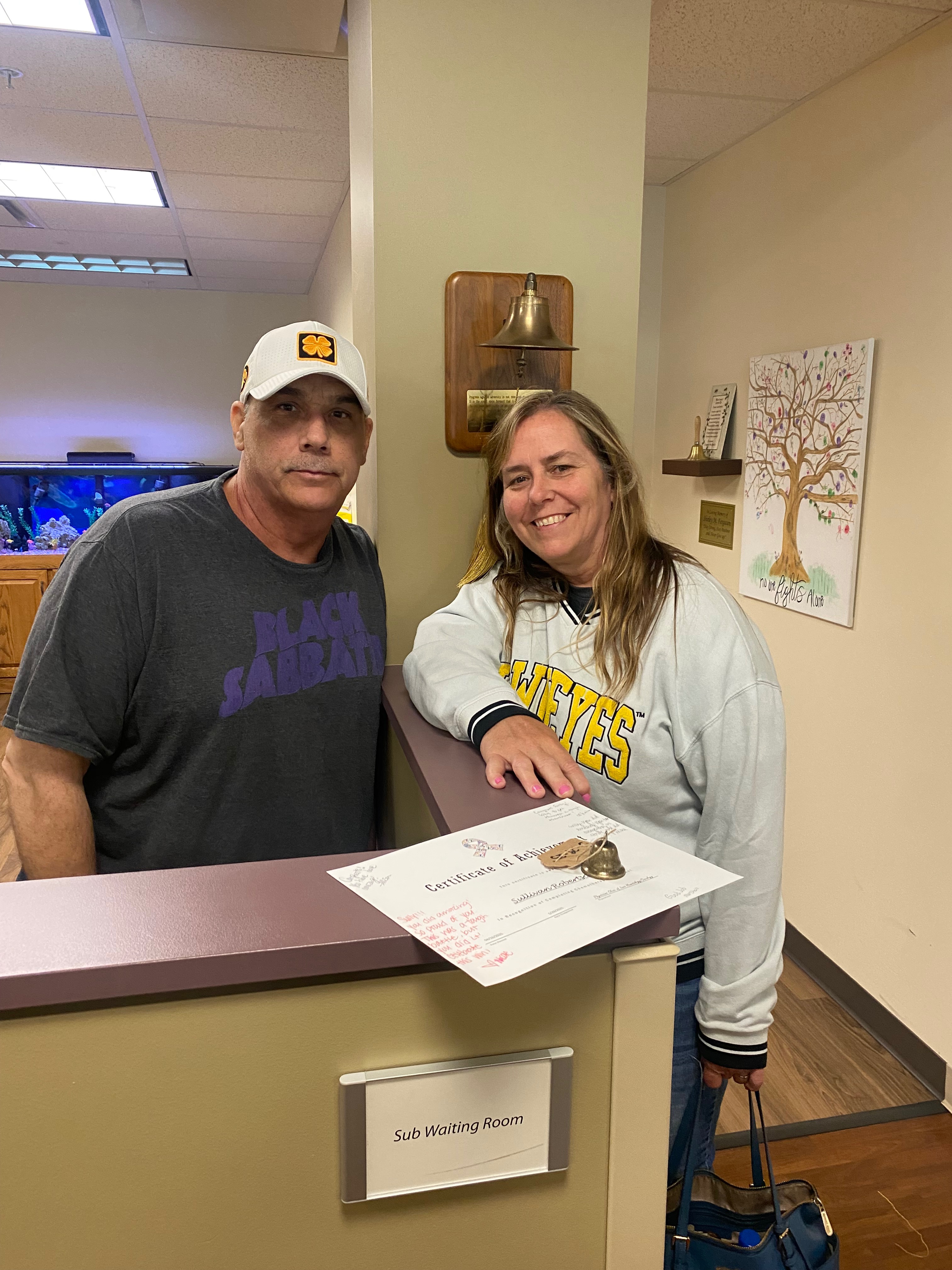 Sully is 2 weeks post treatment. Still has a long way to go but doing good. He was on steroids for a couple of weeks so have a false white blood cell count. It’s lower than they would like it to be at this time so put on antibiotic. Because of the steroid he now has thrush so medicated mouth wash now in the regimen. He has done some eating of soft foods off and on. Is down another 6 pounds (total of 32),but because he’s done so well with drinking and eating to keep muscles active in mouth and throat they aren’t too concerned about it. He should start improving now but still no feeding tube removal for a bit yet. He is sleeping a lot(which is good for him) but it’s making him irritable and moody. He just wants to feel better and enjoy some real food. As long as feeding tube remains in he still won’t be able to work. It will be a while yet to get that out and strength up. He thanks all who have helped out and checked in on him. We both do. CT scan is July 8th with meeting with Dr Fusselman on July 11th. Full PET scan will be scheduled 3 months out from last day of treatment. Please keep prayers coming! Thank you and Love to all!