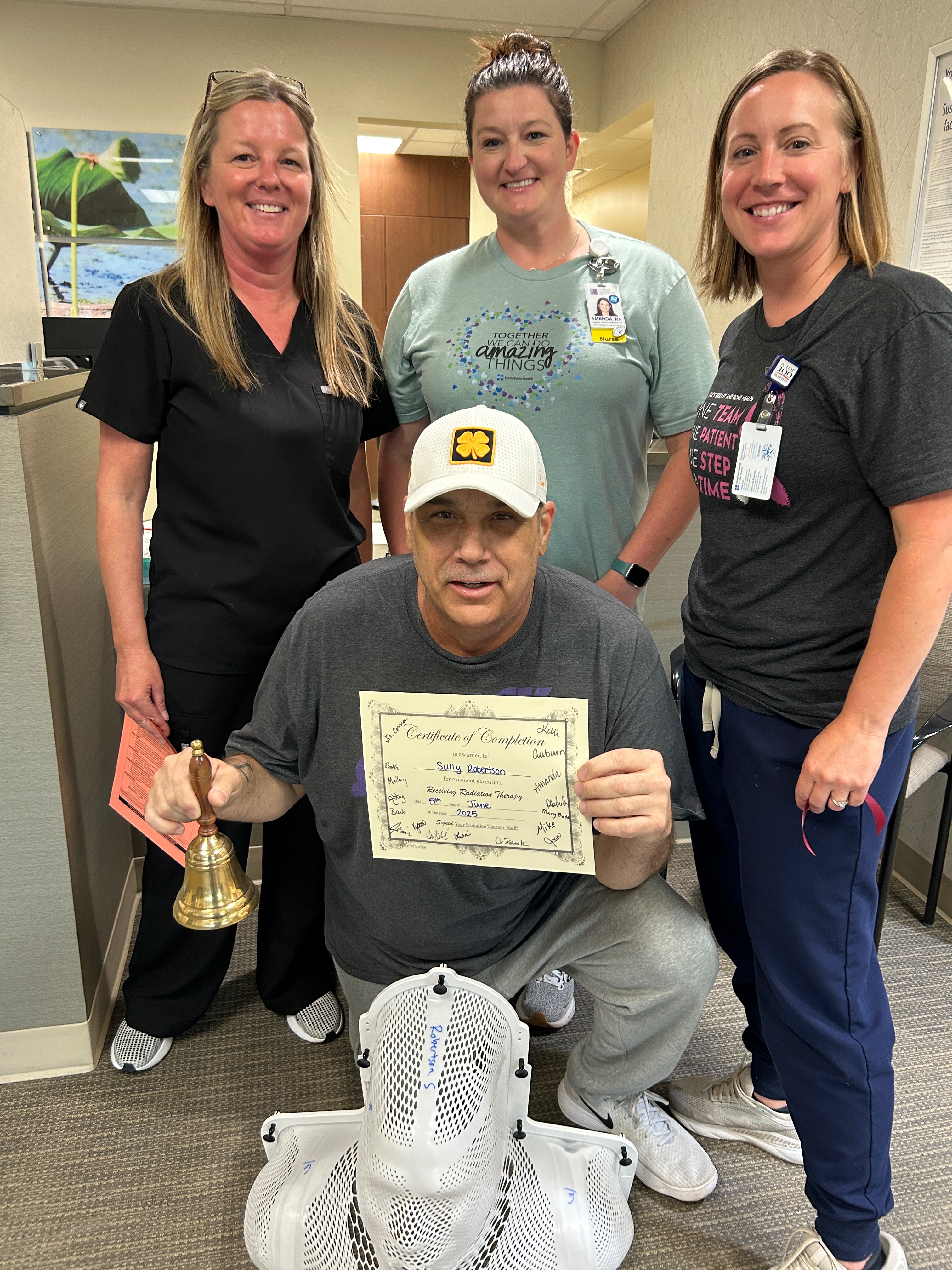 Sully is nearing his last radiation day this Thursday. Swallowing has become more difficult but he continues to find ways to keep eating and swallowing so keeps working the muscles. This will allow for less recovery time and his ability to go back to eating normal food and get the GI tube out. As long as that is in and not healed he won’t be able to return to work. Not sure how long this recovery will be. I just know the next 12-14 days after radiation ends things will get even harder on him before gradually starting to get better. His white blood cells are low to zero so he can’t be around anyone ill. He won’t be able to fight it off so he’s staying stuck at home unless has appointment. He appreciates all the kind words, texts, and calls but especially thankful for any donation he has received that has helped him out with bills. He is the strongest guy we know and determined to get through this. He just hopes he can get his taste buds back and still enjoy a steak , burger, corn and fresh fruits from the market this summer. Thanks again for the prayers, love and kind words.