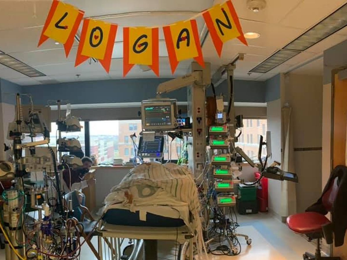 owed in the room to touch and talk to him. He was then moved to the ICU were more attempts to bring him life were made with little success. We were able to watch from outside the doors as they worked on him. They attempted using an oscillator to get him breathing on his own with no success. We were asked if we wished to continue manual life saving measures or attempt a procedure called ECMO (life support). It was not guaranteed that they would be successful in getting him on ECMO let alone it saving his life. We all gathered in the room with him and prayed one last time for a successful procedure. Following the procedure (hours later), Logan was stable enough for us to see him again. He was moved into a long term room in Mary Brigh where we remain. Logan’s chest is literally cut open with tubes and wires going in every direction. They took X-rays, labs and connected him to EEG equipment to monitor for seizures. He had life back in him, he was no longer cold and his skin had pinkness to it again.We are happy to report that Logan’s heart and brain are functioning as they should. His other organs are healthy as well. Everyone we have spoke to has said they are hopeful for him. Cardiology, neurology, respiratory, infectious disease... everything looks good. They are continuing t