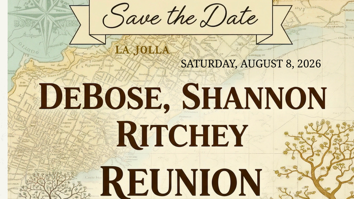 We are proud to announce the DeBose, Shannon, and Ritchey Family Reunion, taking place on August 8th.