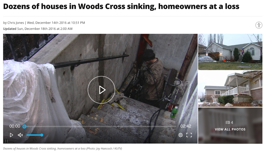 Over 50 homeowners in their Utah neighborhood have reported that the foundation of their houses are sinking and numerous repairs have to be done to resolve the issue. Sinking lands are due to groundwater use, soil issues, underground mining, or natural collapse such as with sinkholes.