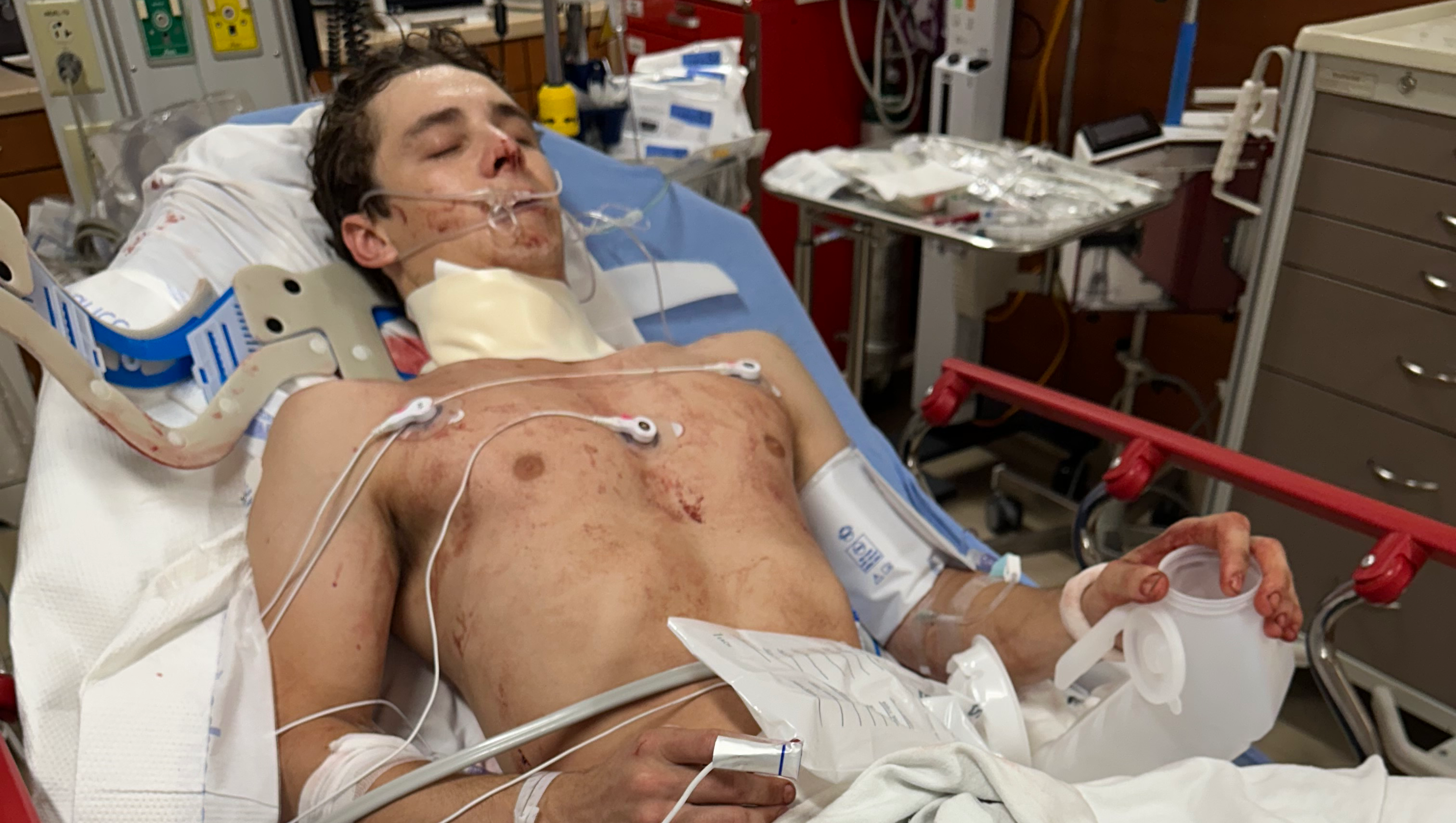 On February 7th, at a ride in Palmetto Florida for a Conley Invitational bull riding, a bull's horn caught me under the helmet (pictured below) cutting open my neck and putting me in the hospital. I lost over 2 gallons of blood during the course of the injury and in between surgery the next day, suffered nerve damage, and nicked my jugular; I was then put into surgery to do plastic surgery on my neck and fix my small carotid artery that was severed. It was just a freak accident, but it did put me in the hospital unconscious and fighting for my life. I know that God has bigger plans for me in life; now it's time to get healed up. I also wanna personally thank everyone who was in the arena that night lifting me up in prayer & especially the EMT / medical staff on hand who got me the immediate attention I needed.