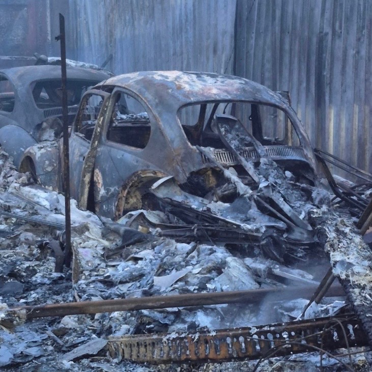 Hi I am Beckie, Jonny’s sister. I am sure you are aware of the fire which spread from a neighbouring unit on Friday 20th March through into to Jonny’s unit ‘Mays Garage’. Jonny was out when it started and came back to chaos. Video footage shows how quickly the fire spread. Jonny had to stand back from trying to rescue customer cars on order of the firefighters. The right thing to do but Jonny is currently haunted by having to listen to the fire destroy both customers, friends and his own treasured vehicles. He is left with no income and endless phone calls and wrangling with insurance and solicitors trying to find help and a solution. The enormous looming prospect of physically clearing and skipping the contents of his burnt out units. He has a heart of gold as anyone who knows him will testify. He is worried for his customers and friends over his own needs. His cars were a labour of love; the Desoto was so rare, the Beetles were set to race again…. every car in there has a story. I wanted to do something as I am sure many of you do too so let’s try a raise a bit of cash for him. Even if we raise £15 to buy him a bottle of gin it’s a help. Thank you xx