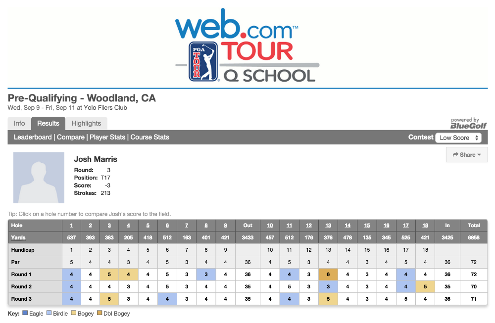 15 years ago, Josh said he wanted to play golf on the PGA Tour. Last week, Josh finished 17th out of 84 players at the first stage of Q School which qualified him to go to the next stage in October!!! (Q School is a series of qualifying tournaments to get on the Web.com Tour, and is the ONLY path to the PGA Tour). This was stage 1 of 4 total that gets him on tour next year.
