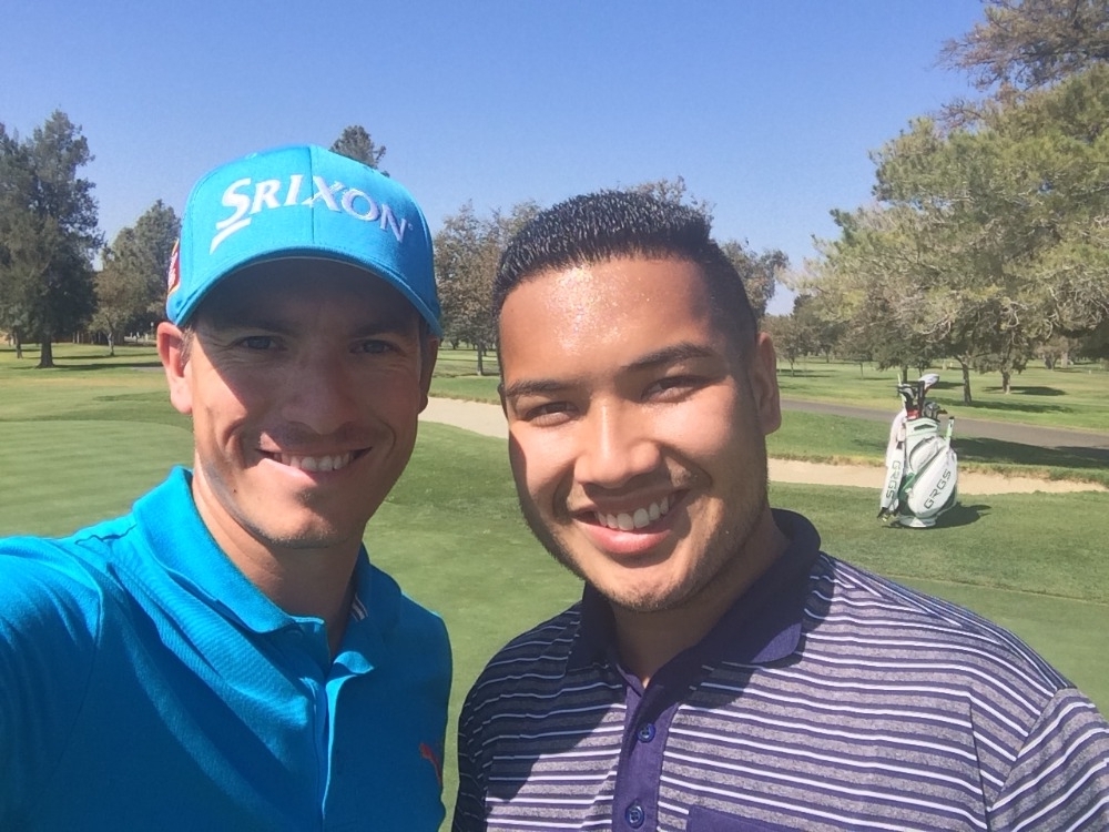 Josh with his caddy Daniel in Sacramento for the first stage of Q School last week.