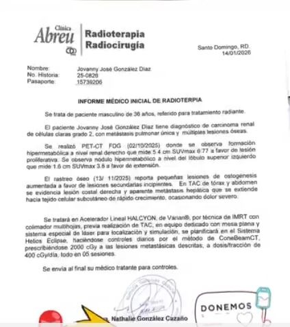 Jovanny Gonzalez está atravesando uno de los momentos más difíciles de su vida. Fue diagnosticado con cáncer renal con metástasis, una condición que no solo afecta un órgano, sino que ya se ha extendido a otras partes de su cuerpo, adyacente a los pulmones.