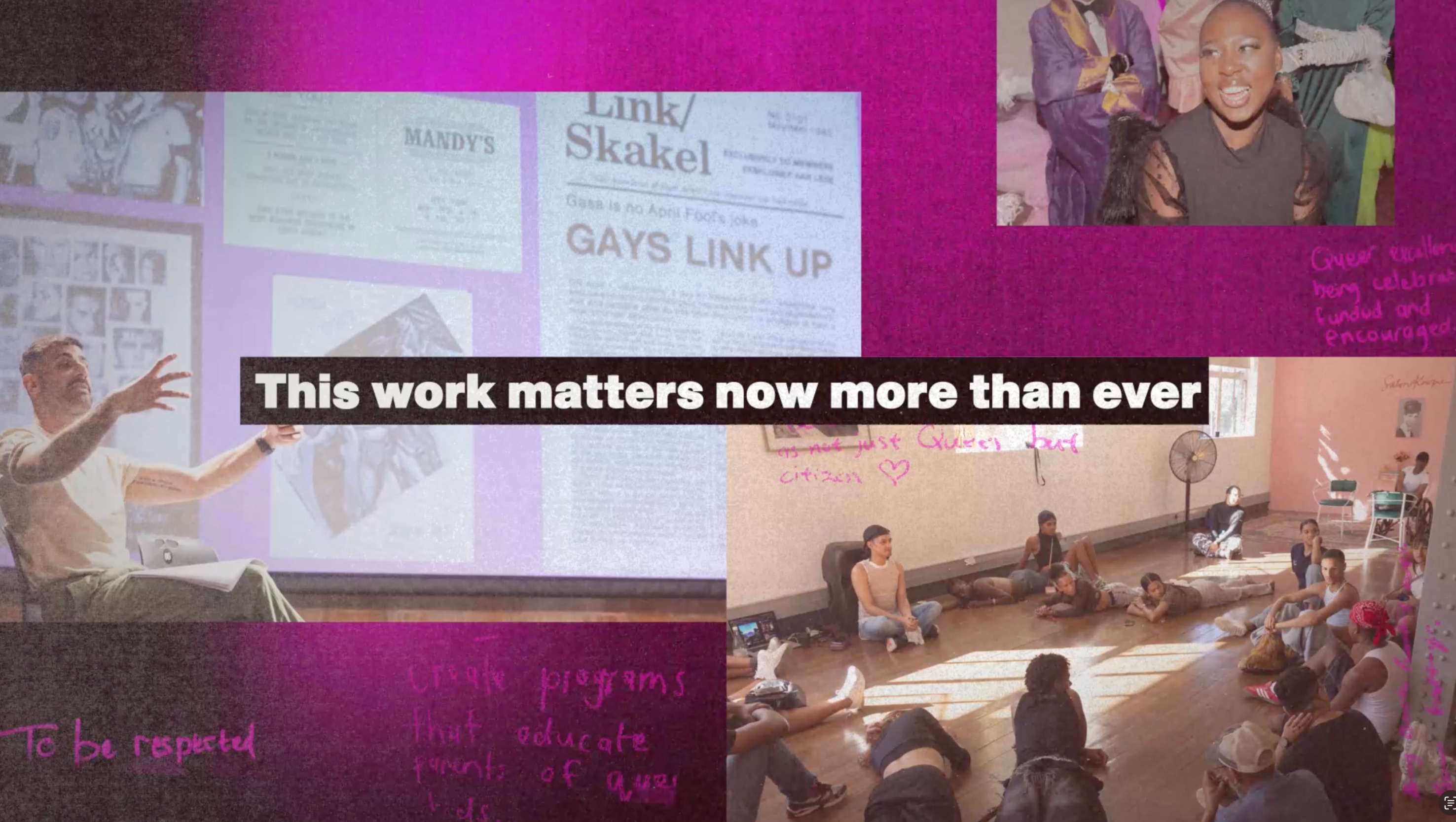 In partnership with the GALA Queer Archive and the District Six Museum , Salon Kewpie was created so that queer and trans youth of color can learn what Kewpie modeled in practice: how to live, gather, and resist when the world is telling us to disappear.