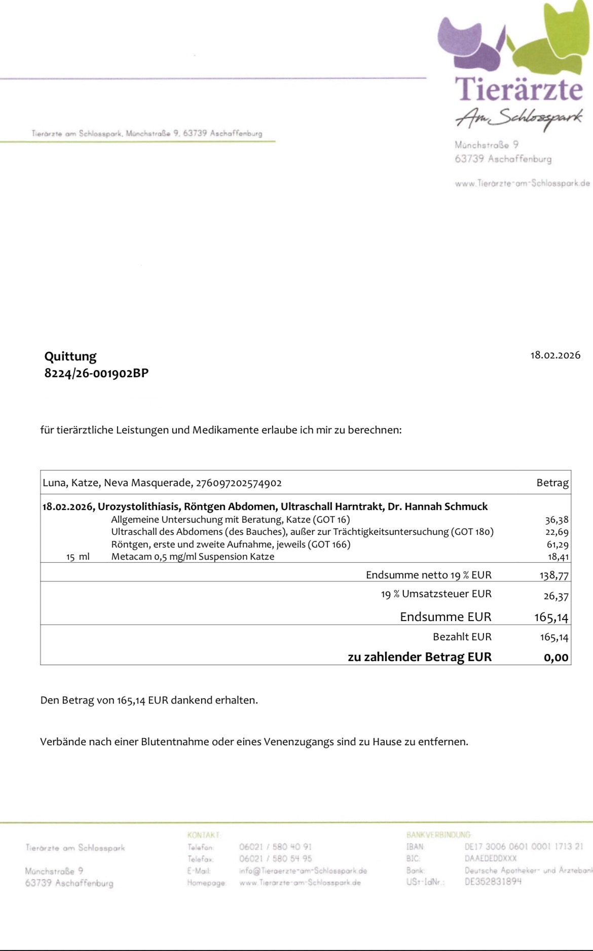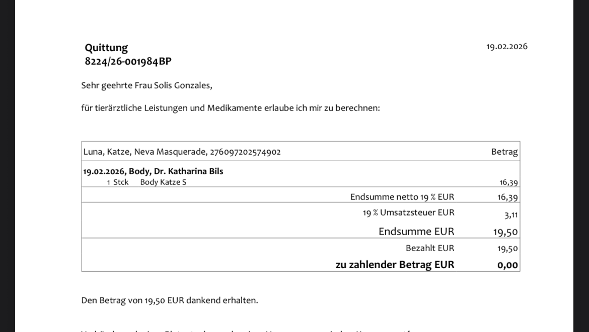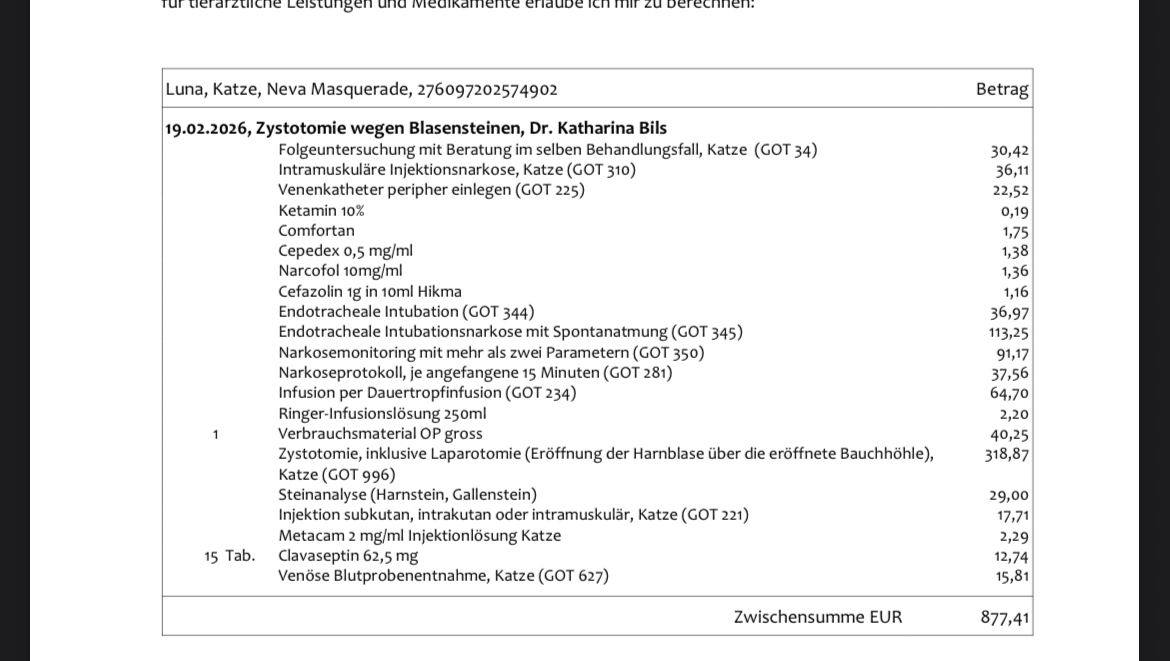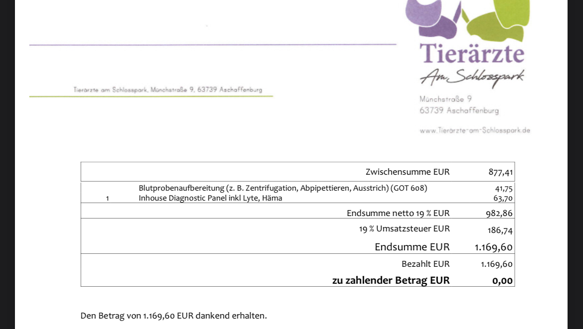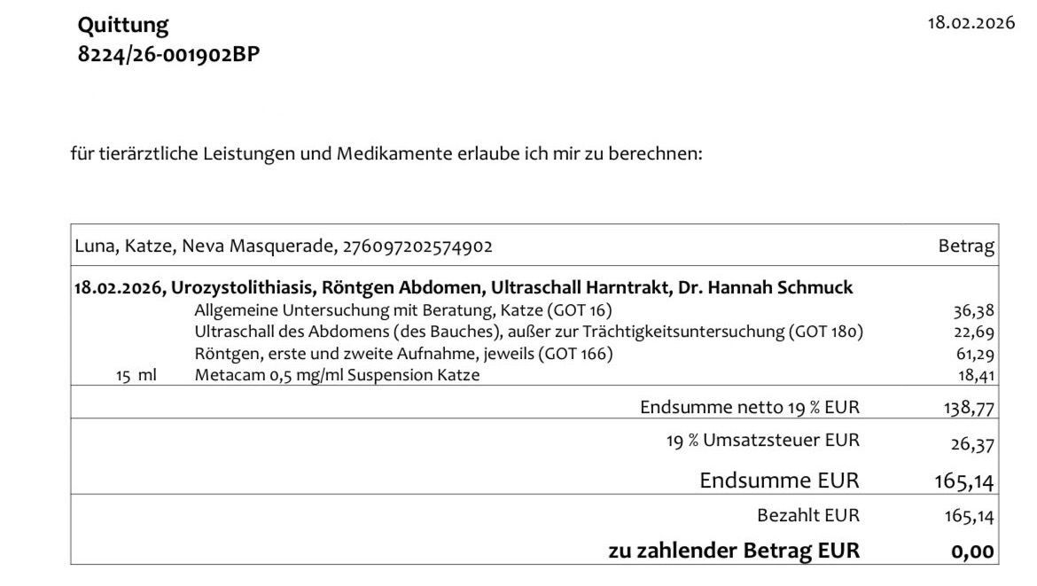 today’s vet visit (165,14€)