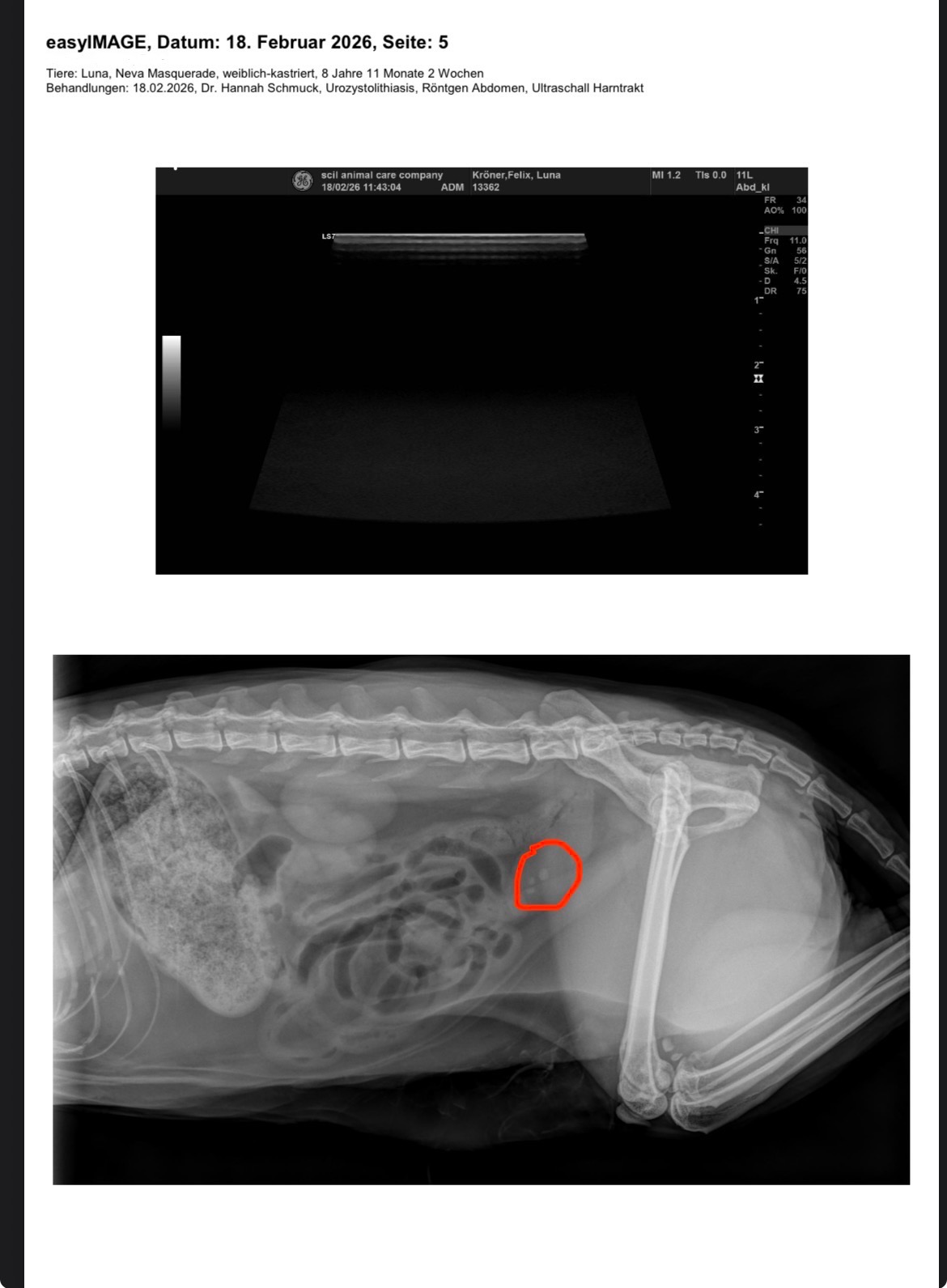 Knowing her previous symptoms 5 years ago, the size of the stones and due to the fact that she is already on specialized food, the vet says surgery again is the only way to make her comfortable again.